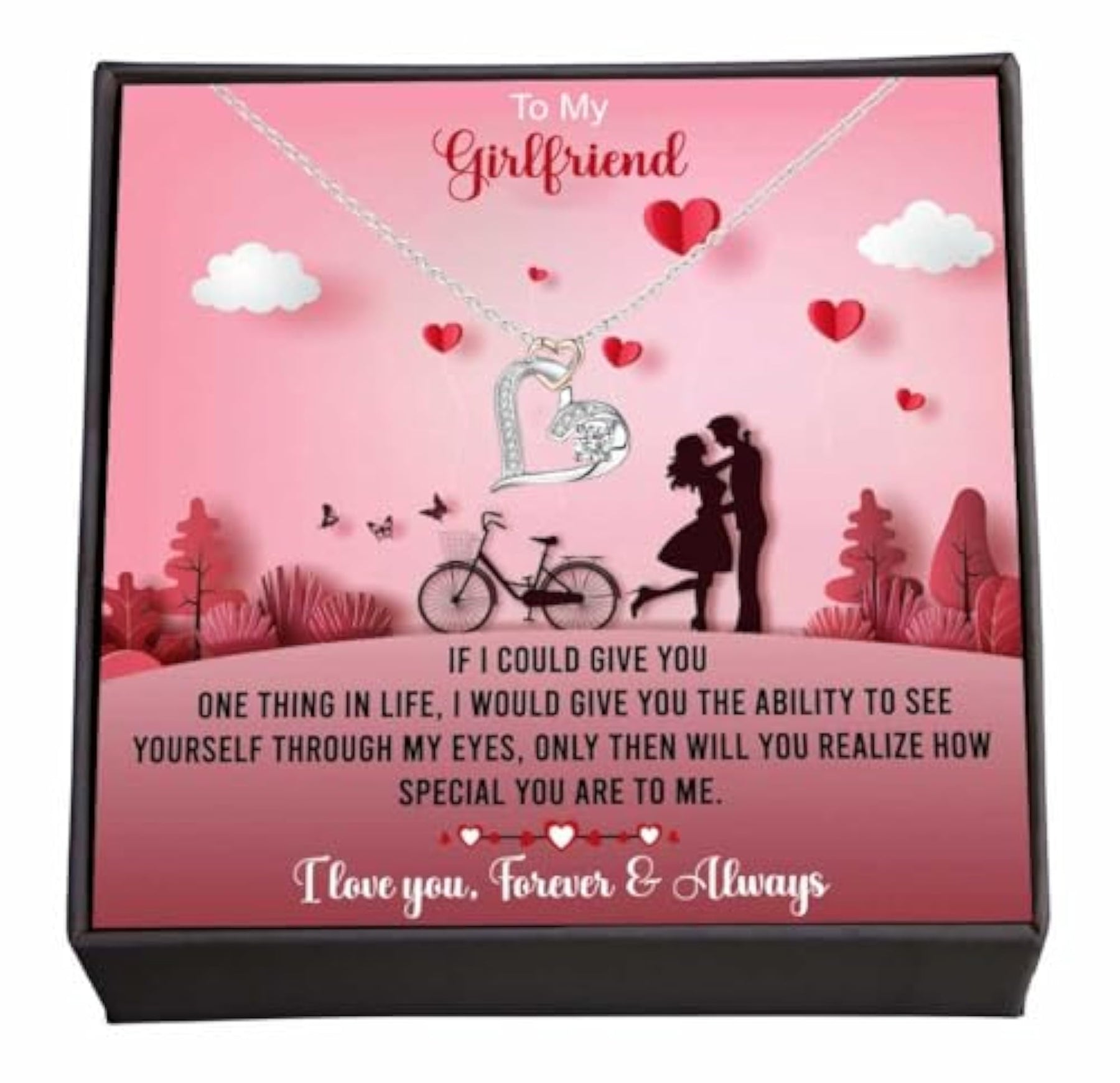 This dainty heart chain necklace in silver features a zirconia message inside. It's the perfect gift for your bling queen girlfriend.