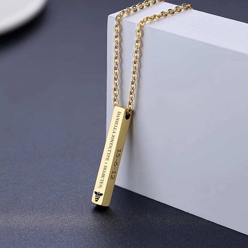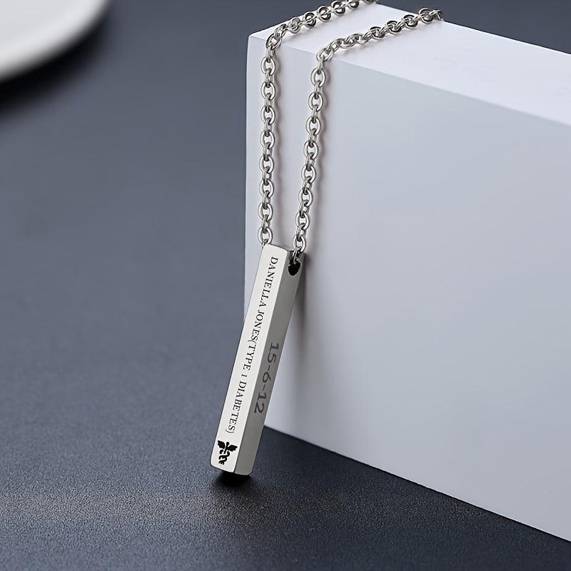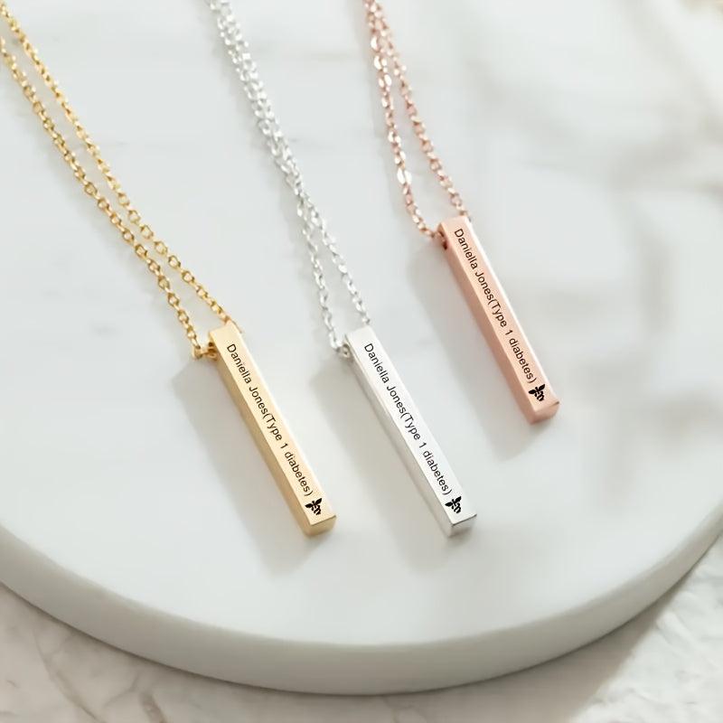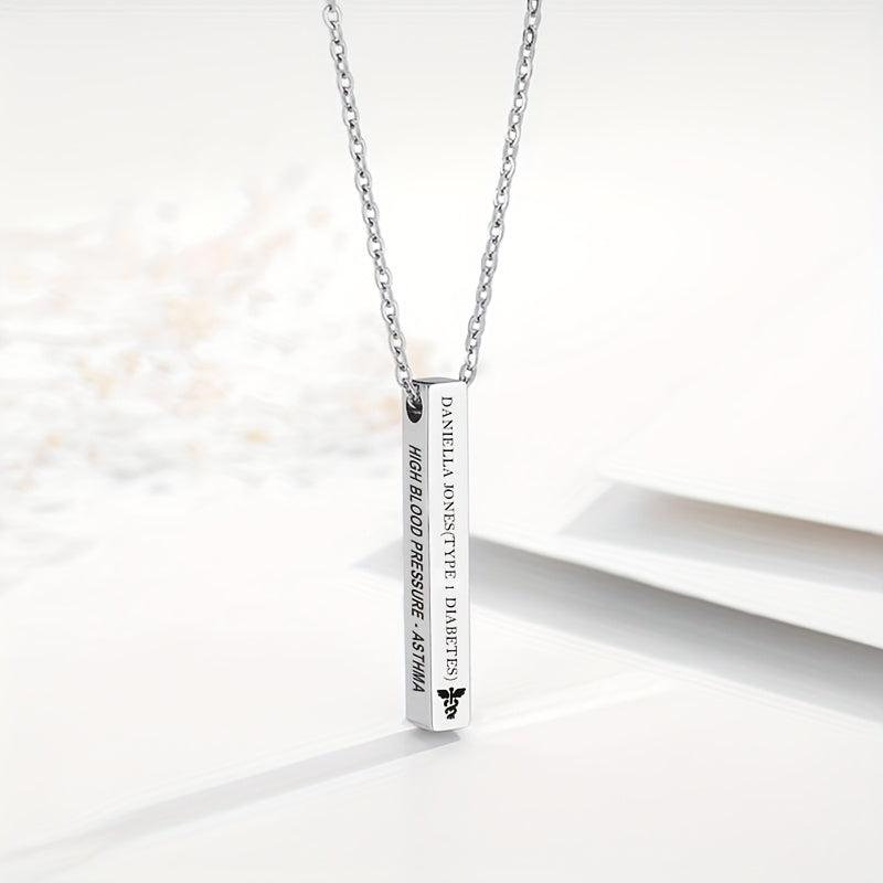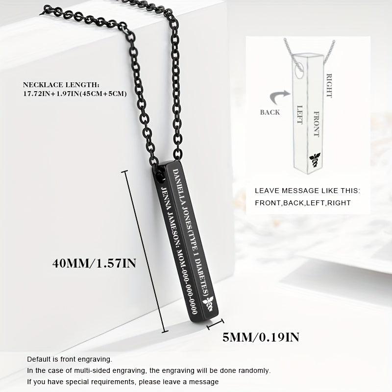 This 3D ID necklace features four-sided engraving for emergency information. It's a perfect gift for her on Mother's Day or Christmas.