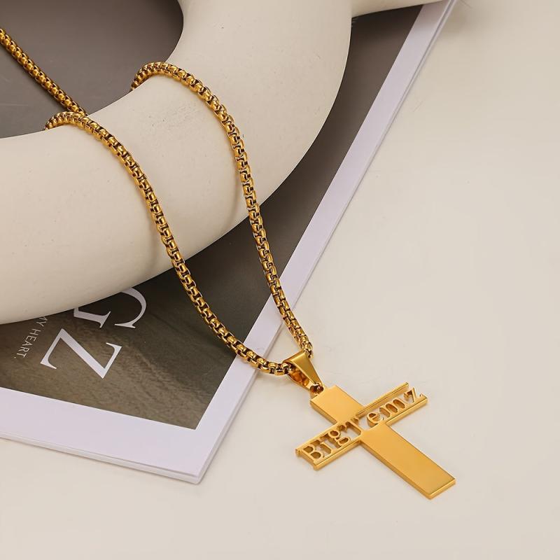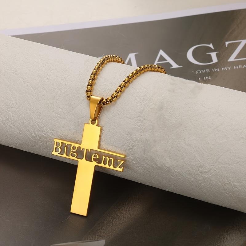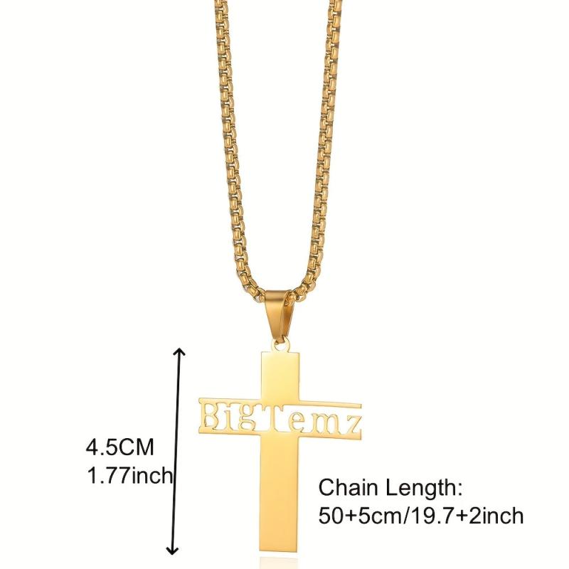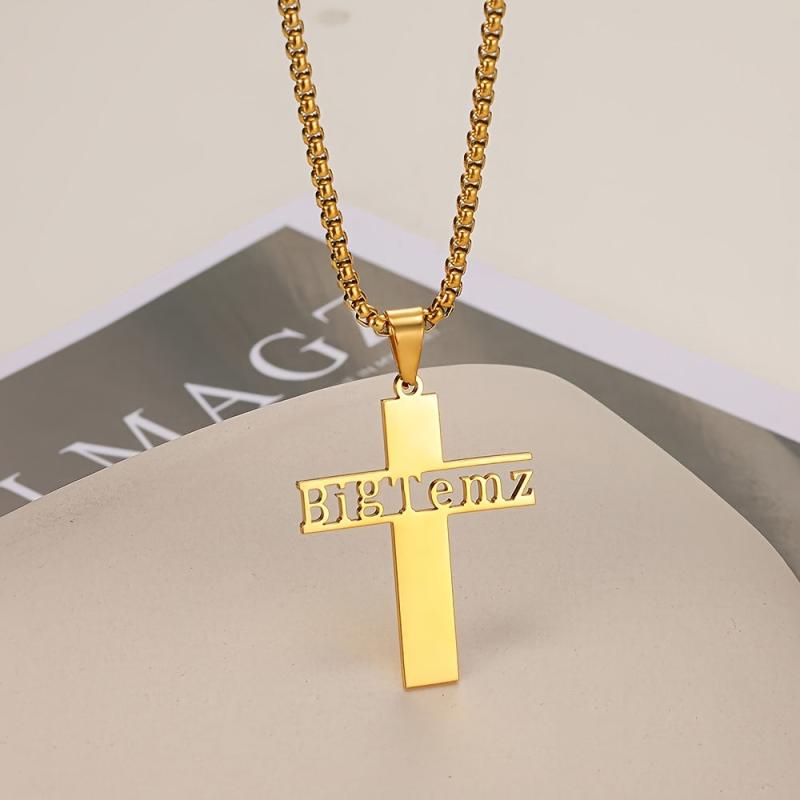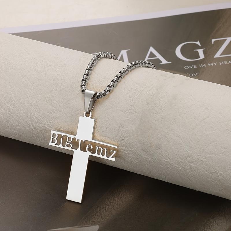 Make a statement with this customized name necklace featuring a detachable large size nameplate pendant on a bead chain cross design. The necklace is made of durable stainless steel.