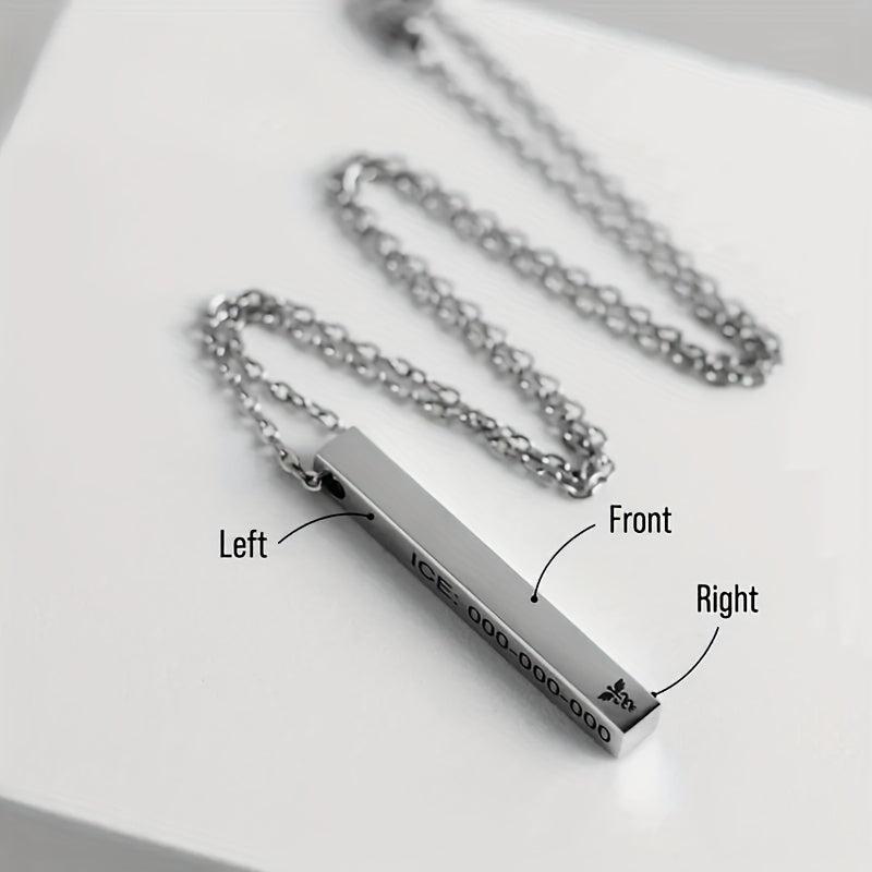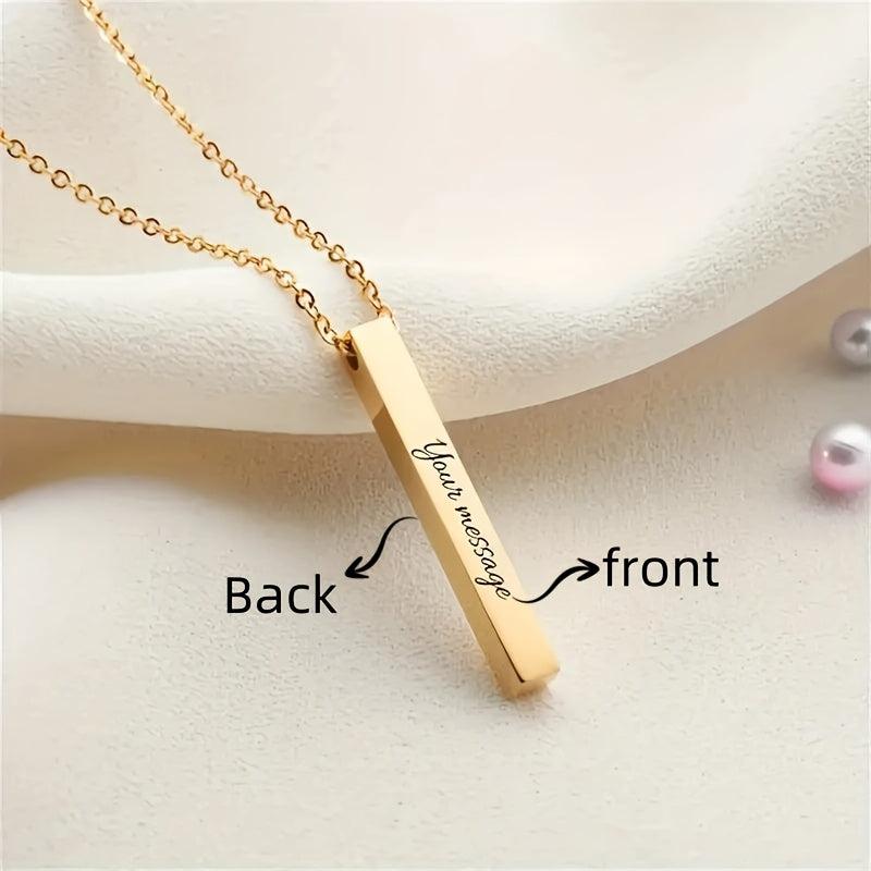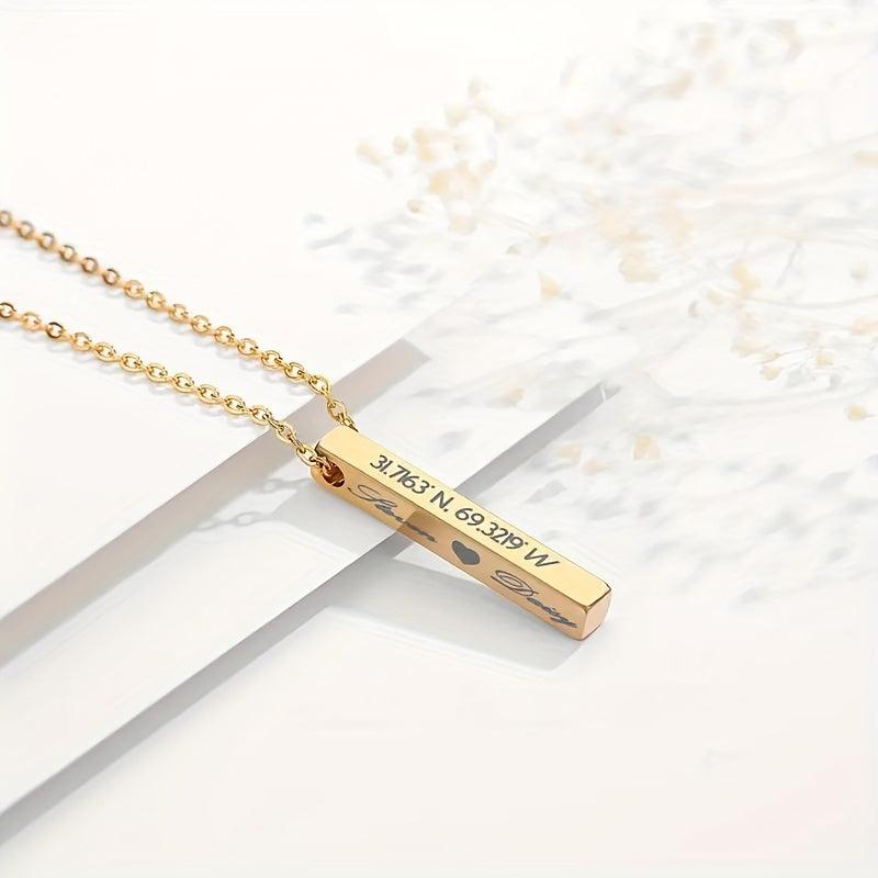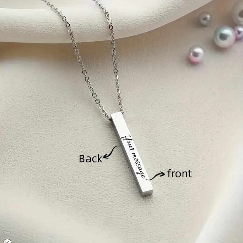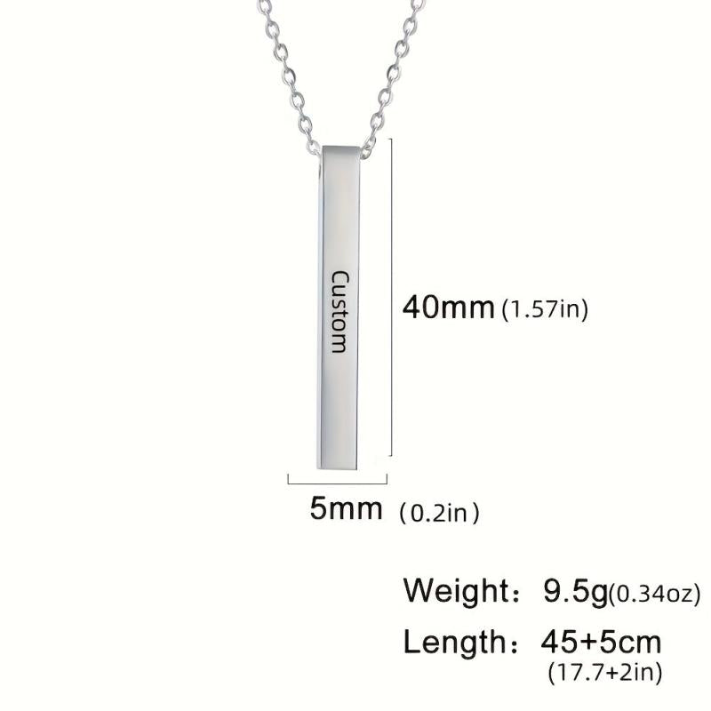 This custom engraved pendant necklace is a fashionable accessory made of high-quality stainless steel. Ideal for couples, it can be personalized with names, dates, numbers, or letters.