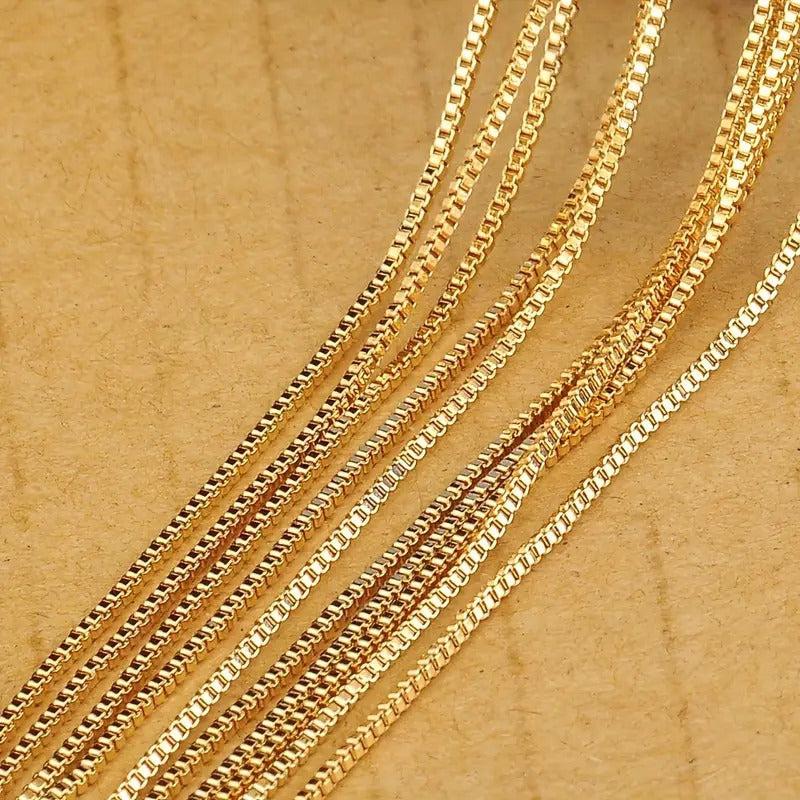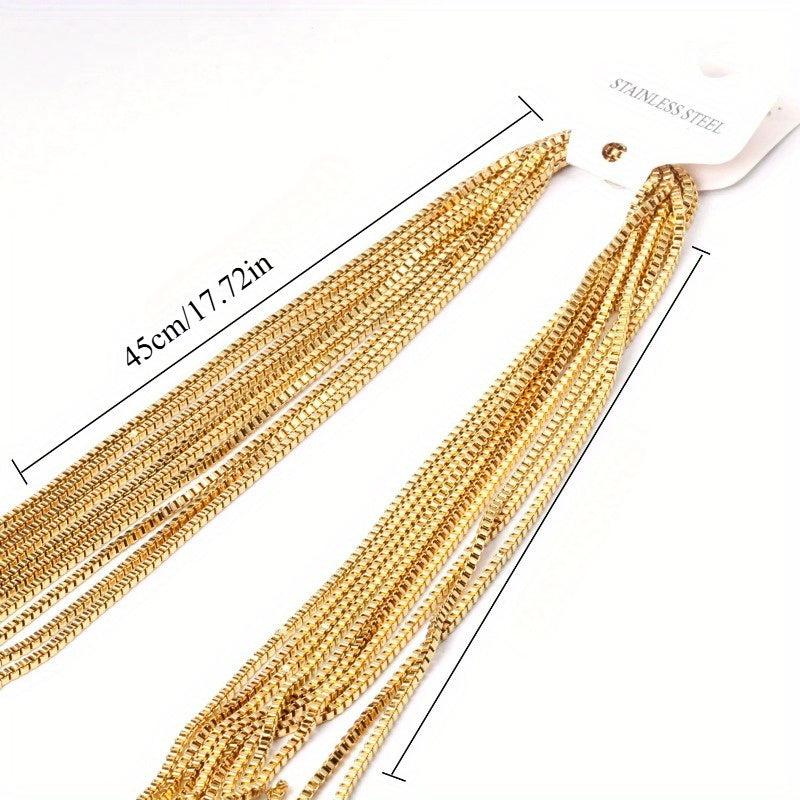 This stylish stainless steel box chain necklace is perfect for both men and women. It is 18K plated to prevent fading, making it suitable for any occasion.