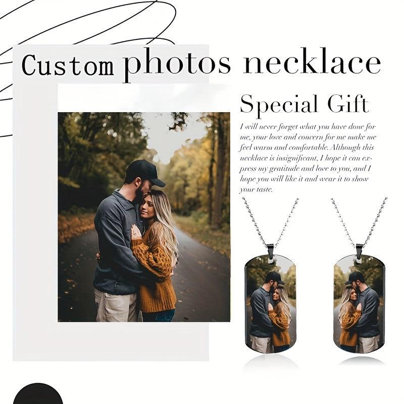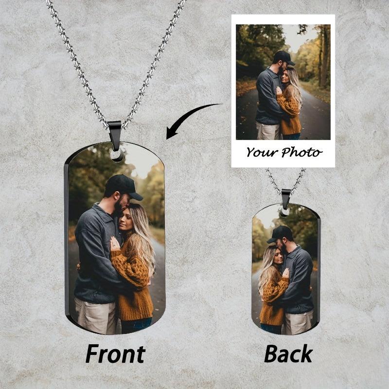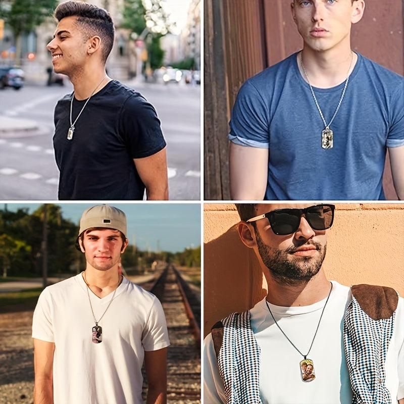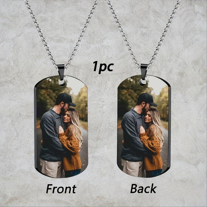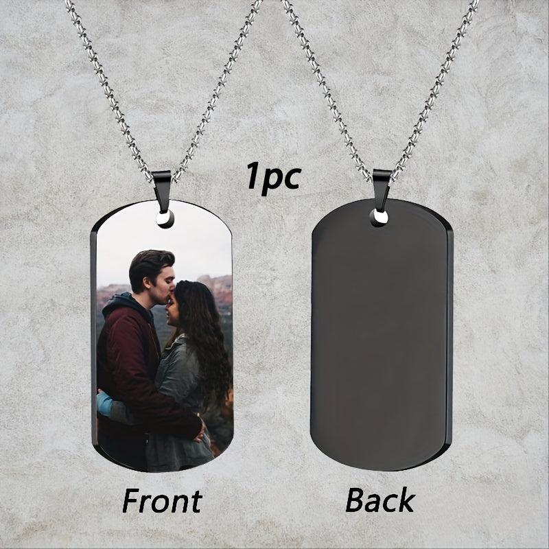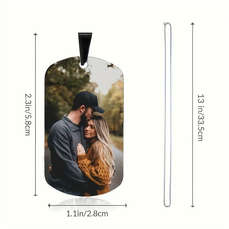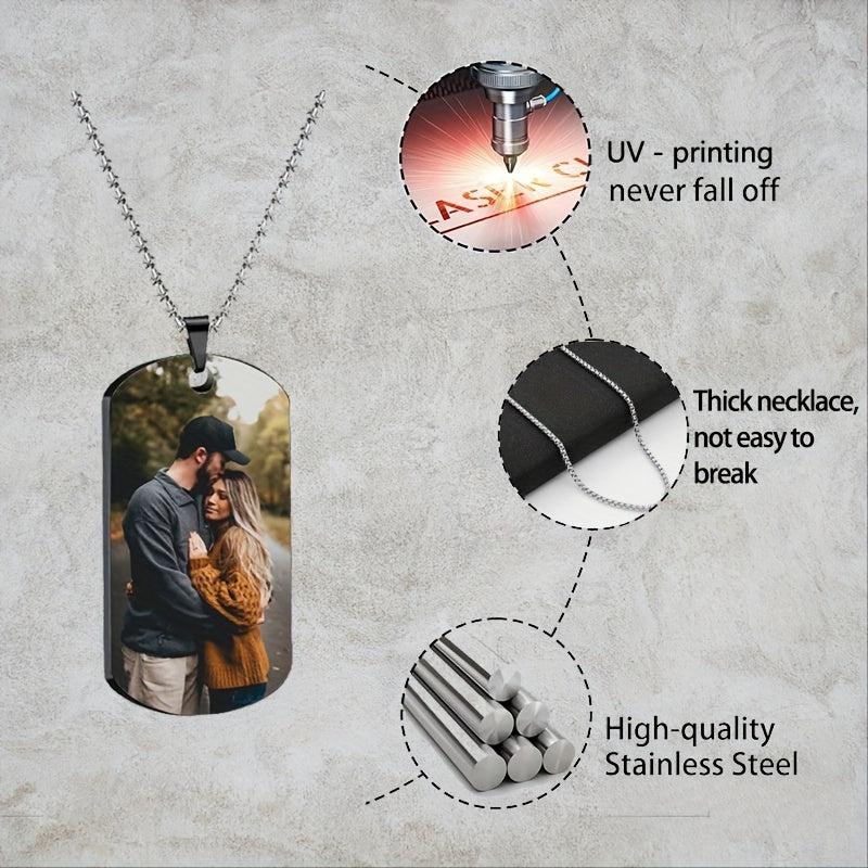 This stainless steel dog tag pendant necklace is a perfect gift for men. Customize it with a special photo for a unique touch. Ideal for birthdays, anniversaries, or as a thoughtful boyfriend gift.
