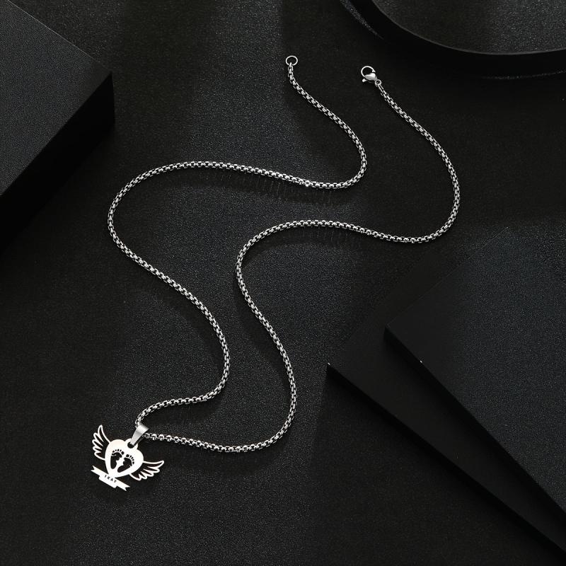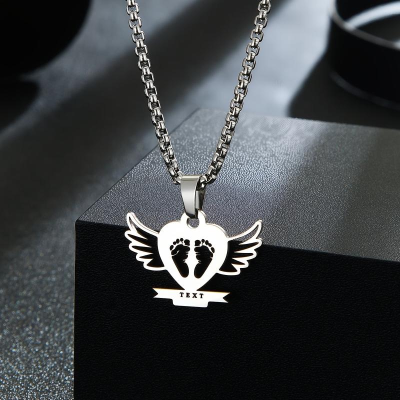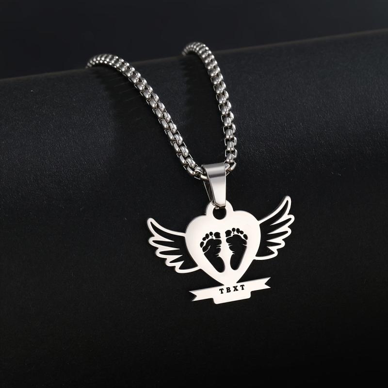 Custom engraved heart & wings pendant necklace made of durable 304 stainless steel. Ideal for Valentine's Day, Mother's Day, and couples. Personalize with your name.
