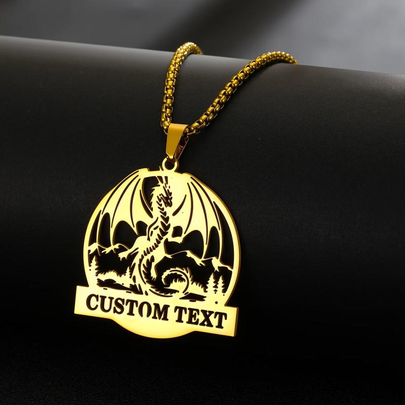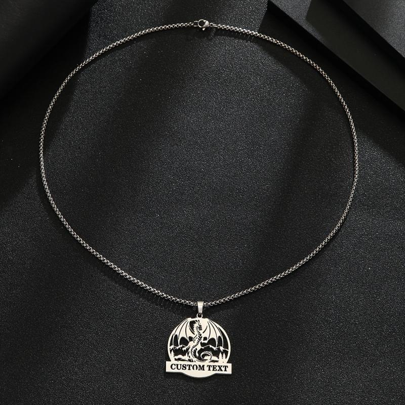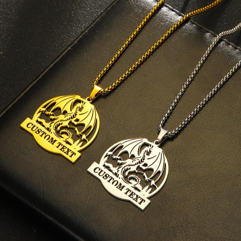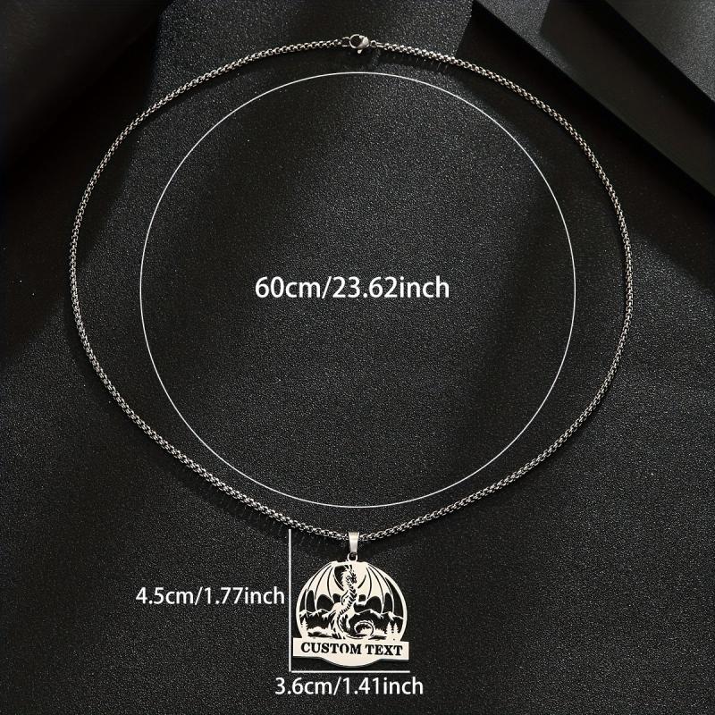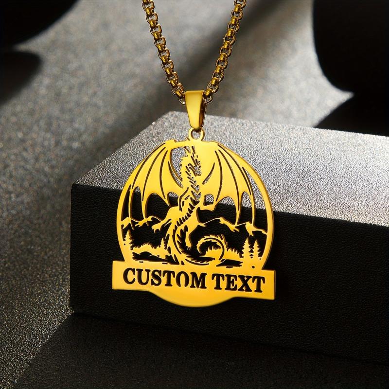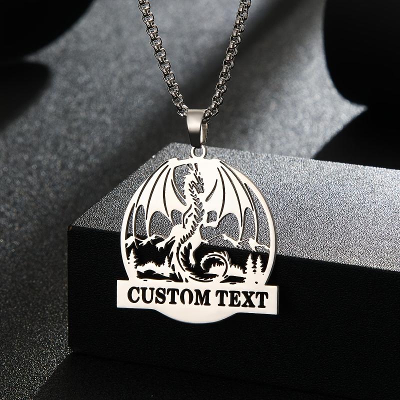 This customizable pendant necklace features a winged dragon design with an option for personalized name engraving. Made of high-quality stainless steel, this necklace is ideal for daily wear and special occasions like Halloween and Valentine's Day.