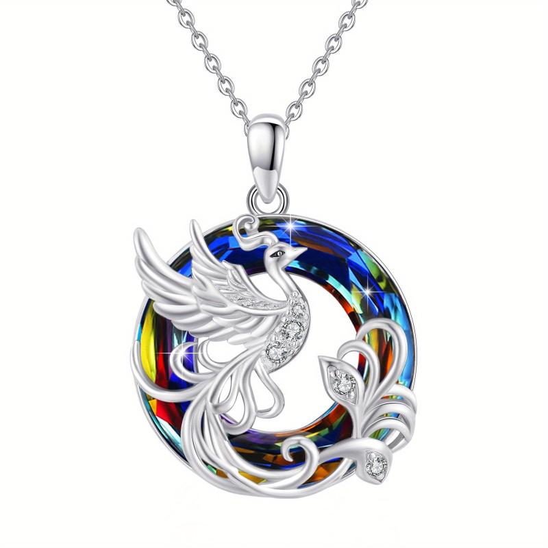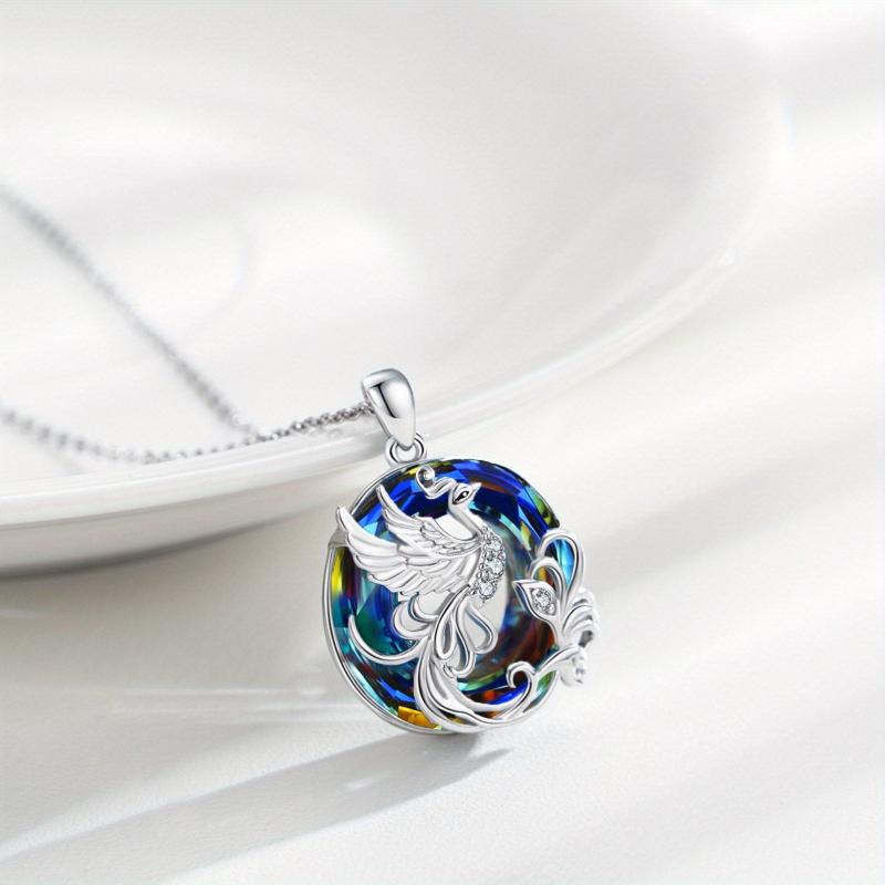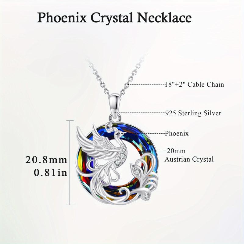 Make a statement with this stunning Phoenix Necklace featuring a round synthetic crystal pendant in a 925 sterling silver setting. The intricate phoenix design symbolizes rebirth and renewal, making it a meaningful and eye-catching accessory.