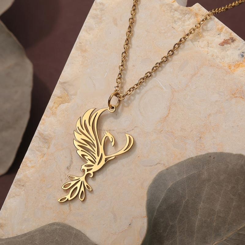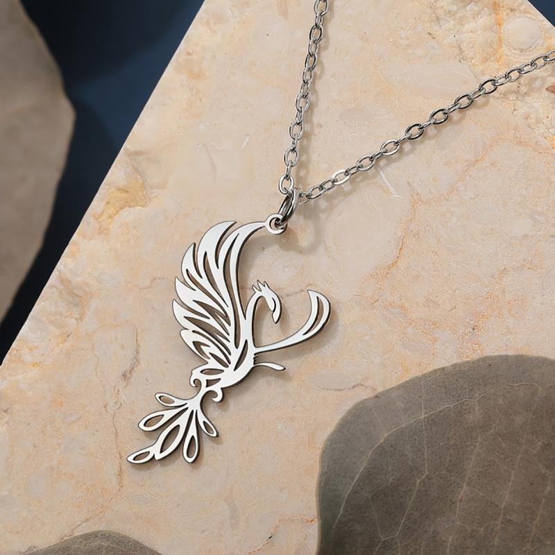Elegant and durable stainless steel necklace featuring an intricate phoenix bird design. Perfect for everyday wear for both women and men.