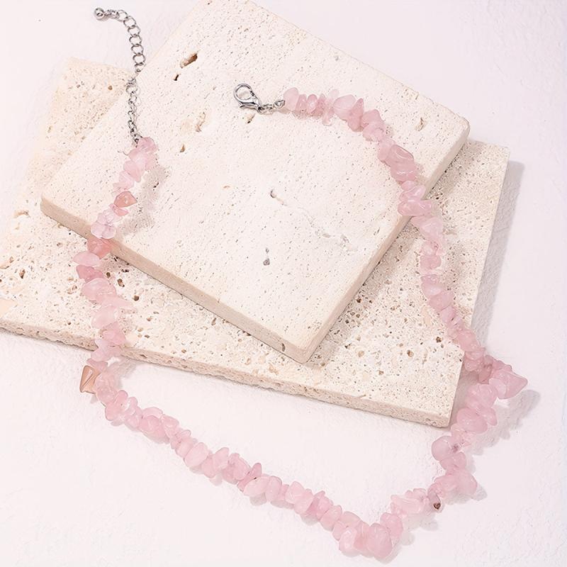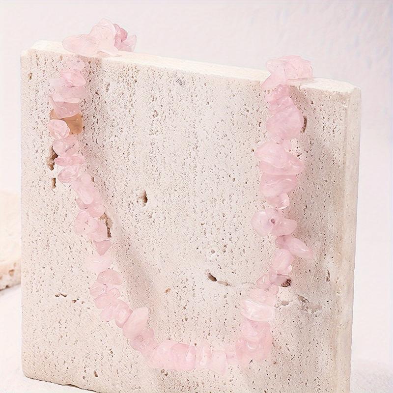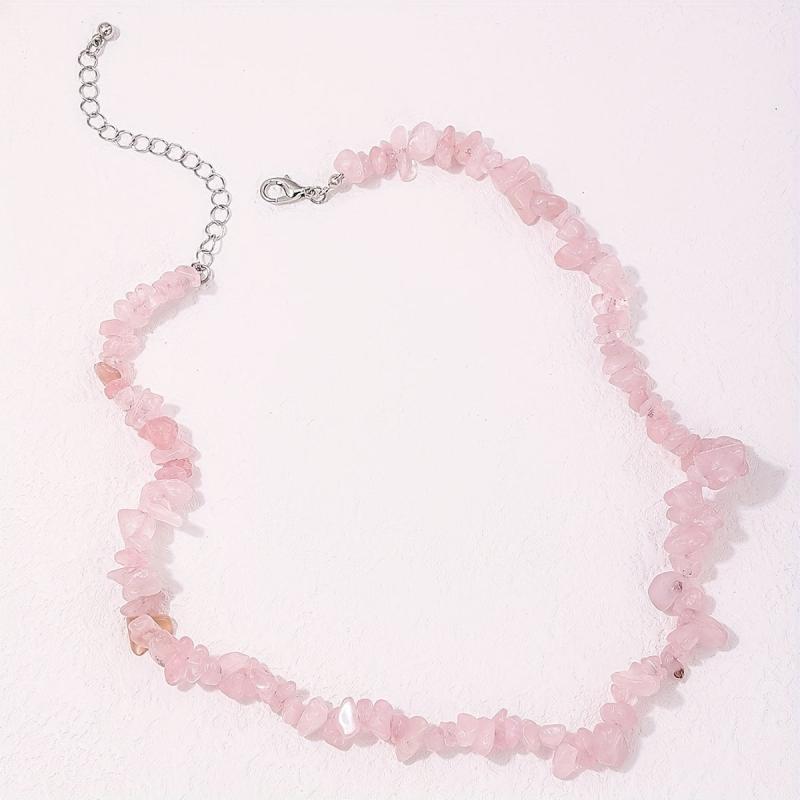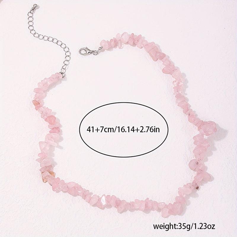 Add a touch of bohemian charm to your spring and summer vacation look with this natural pink baroque beaded necklace. Made of high-quality glass stones, this adjustable clasp necklace is perfect for adding a pop of color to your outfits.
