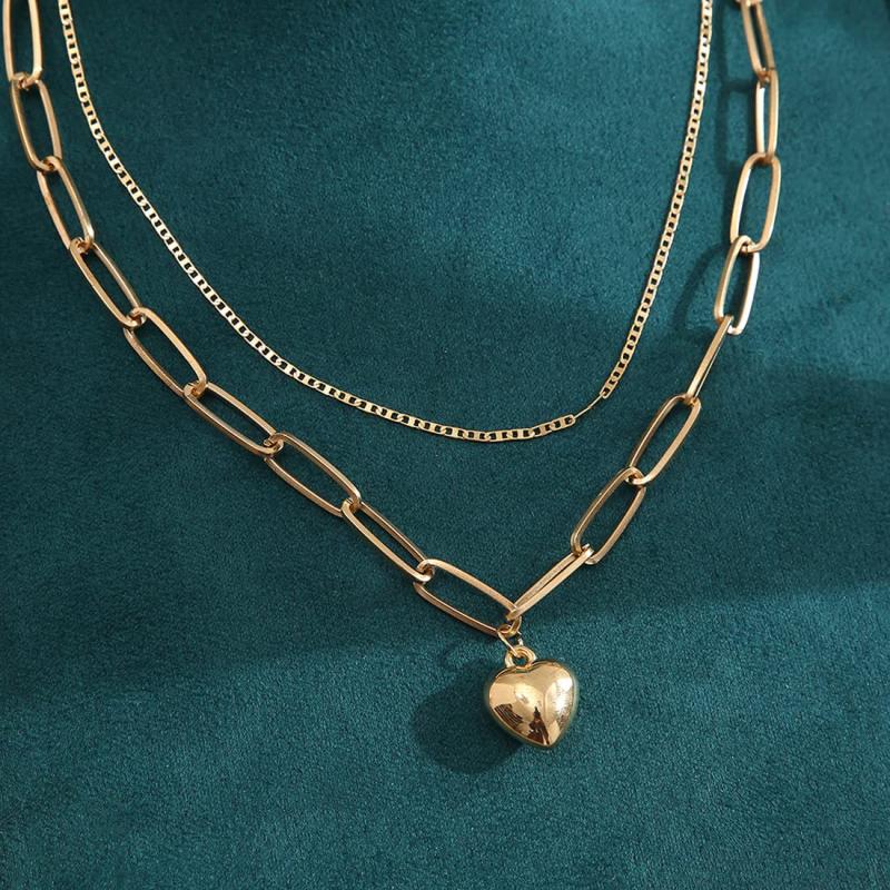 Elegant layered necklace featuring plated hearts design. Perfect accessory for any outfit.