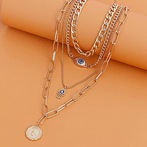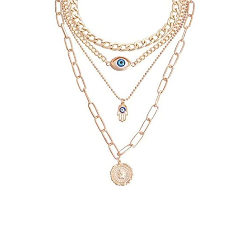 This stunning necklace features a plated-toned Evil Eye and Buddha Hand pendant, adding a touch of mystique and spirituality to your look.