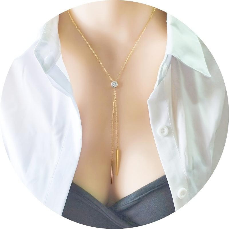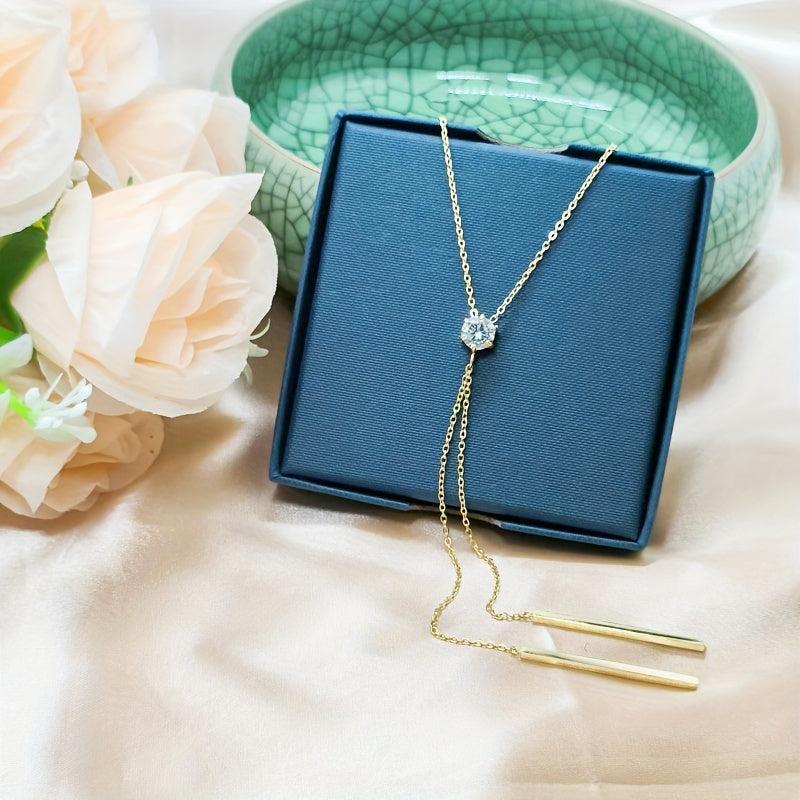 Elegant Y shaped necklace with sparkling cubic zirconia, ideal for both everyday wear and special occasions.
