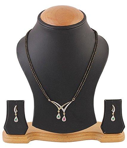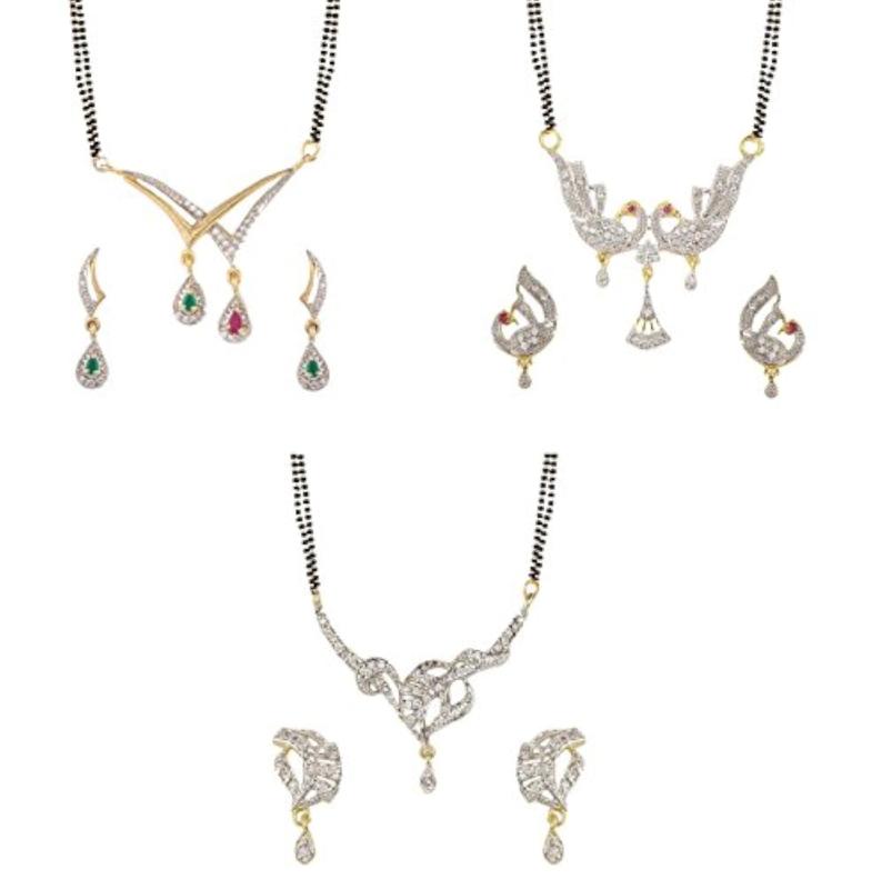 Elevate your style with this stunning 3-piece American Diamond mangalsutra set. Perfect for special occasions or everyday wear.