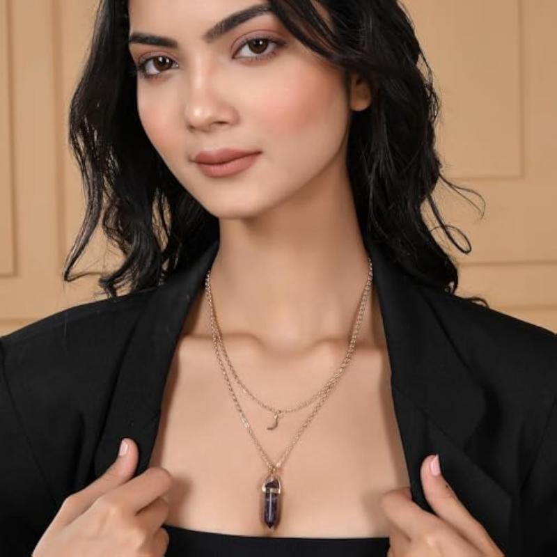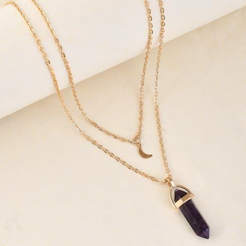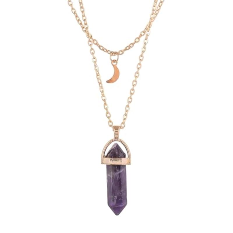 This plated necklace features a beautiful purple crystal and moon charm for a celestial look.