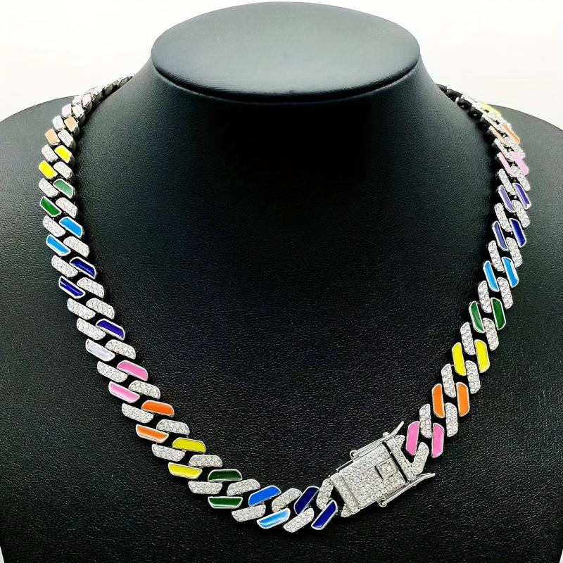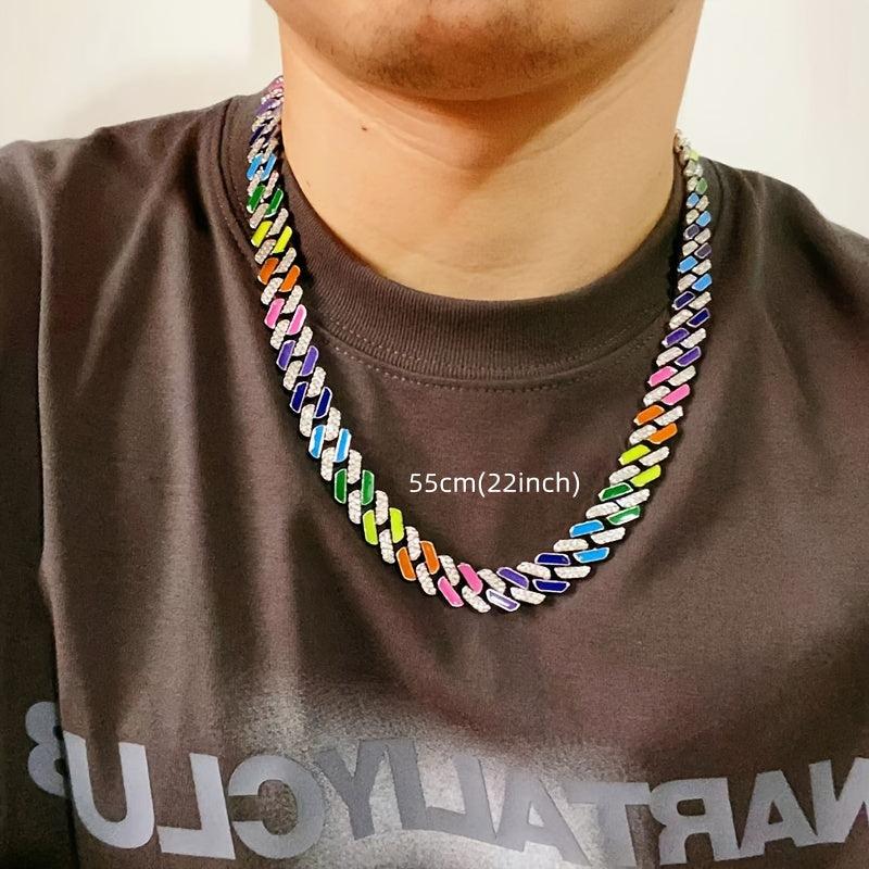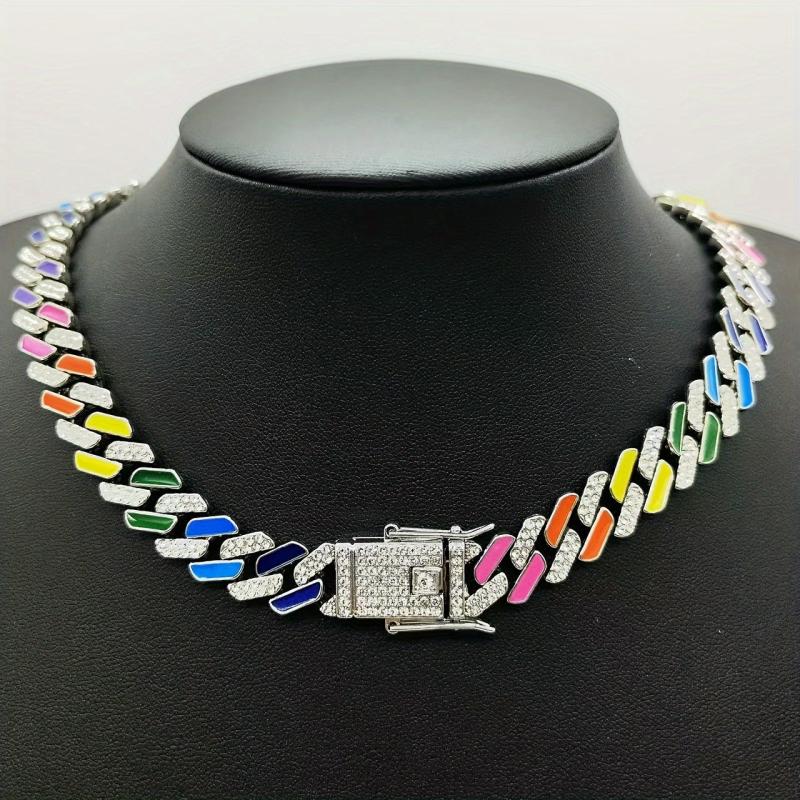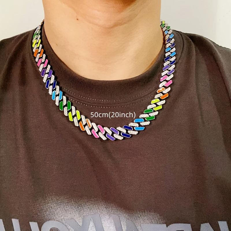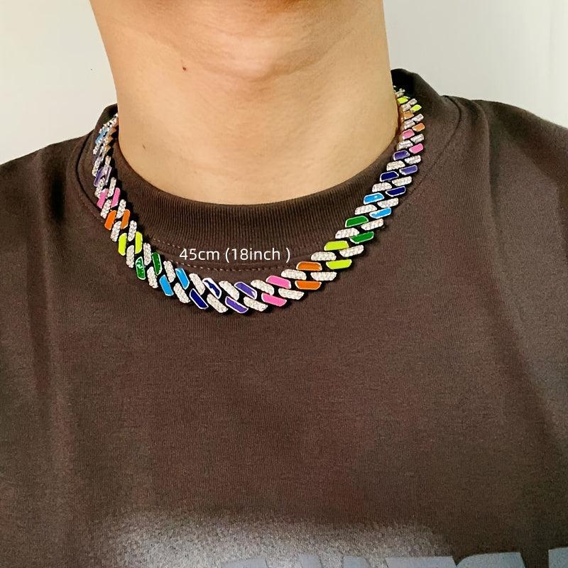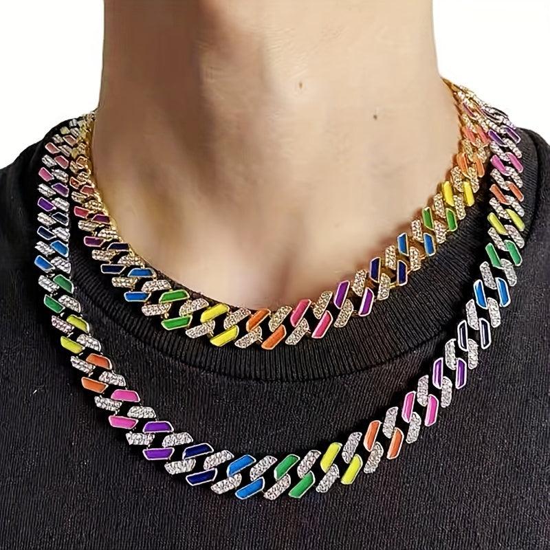 This hip hop style rainbow chain necklace is a perfect accessory for both men and women. It makes a great gift for any occasion.