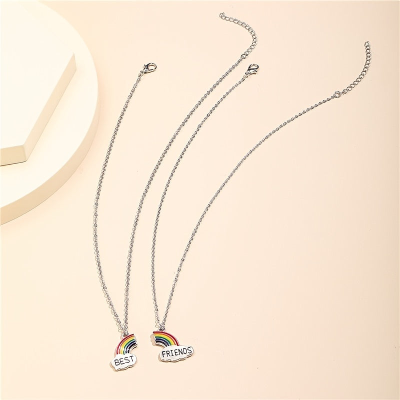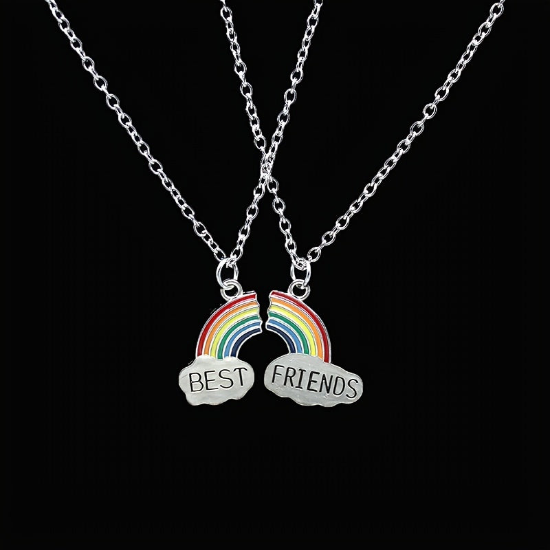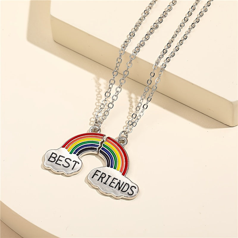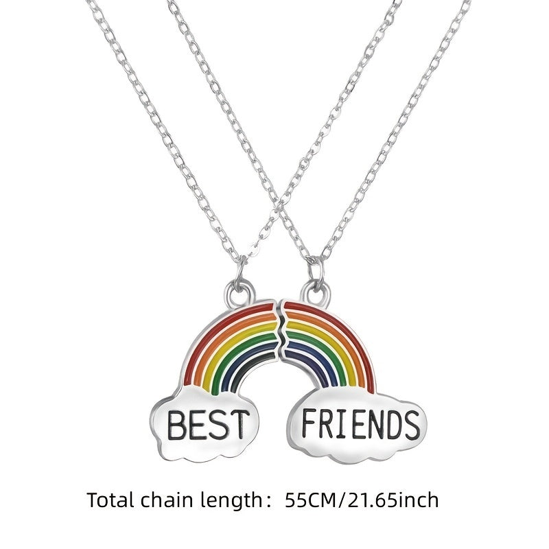 This set includes a men's and women's rainbow pendant necklace, perfect for friends to show their bond. The colorful design symbolizes friendship and unity.