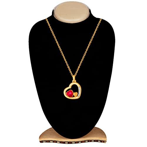 This stunning pendant features a triple heart design with red crystals, symbolizing eternal love and romance.