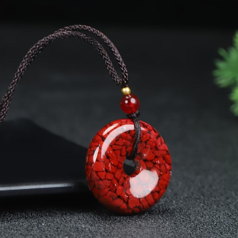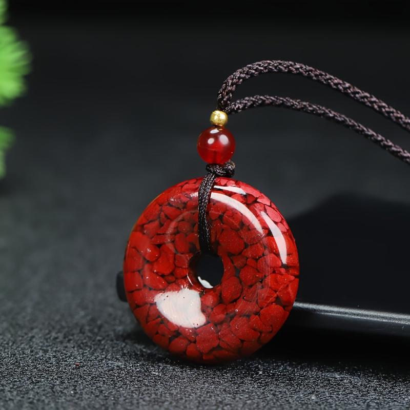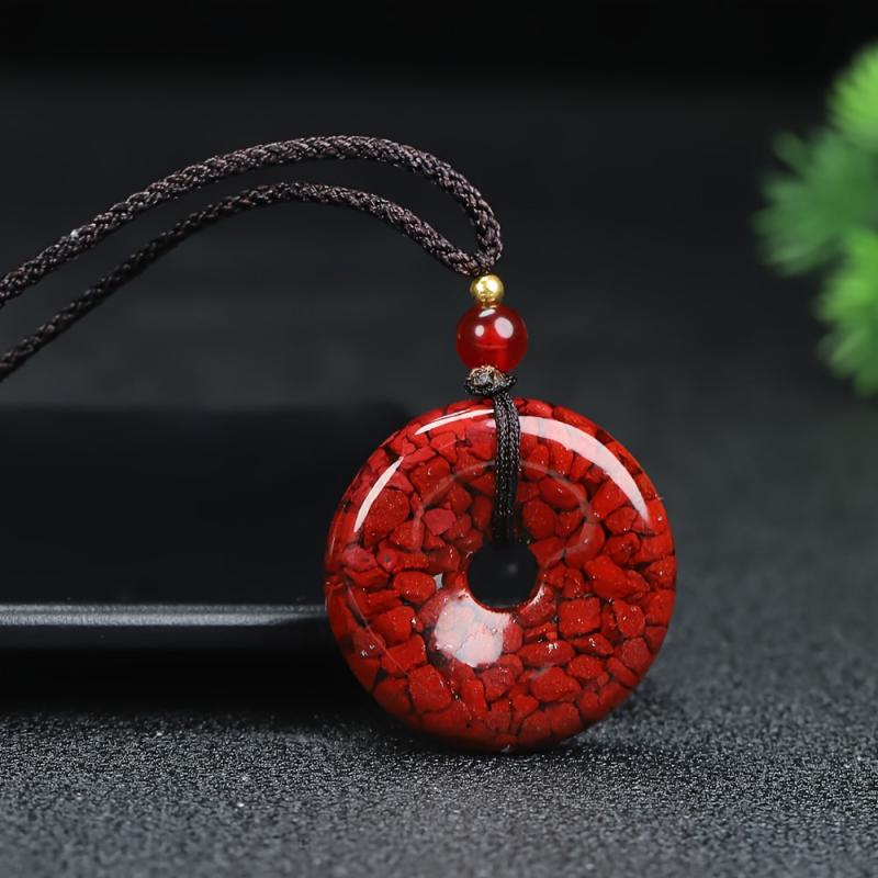 Enhance your style with this elegant red sandstone pendant featuring a golden bead. Perfect for men who appreciate unique accessories.