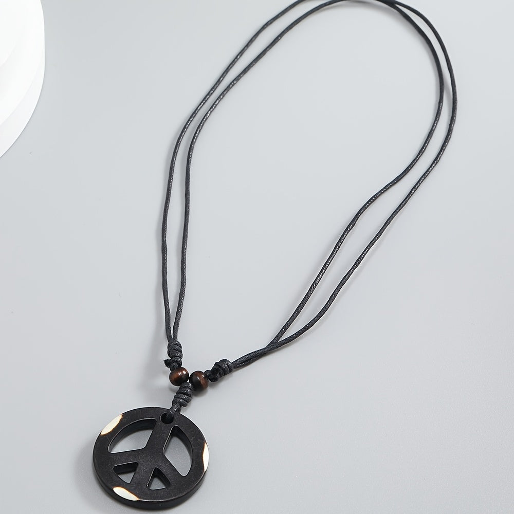 Elevate your style with this retro punk hip hop resin necklace featuring a retractable wax line and a Peace 100 pendant. Perfect for men who appreciate unique accessories.