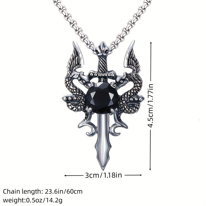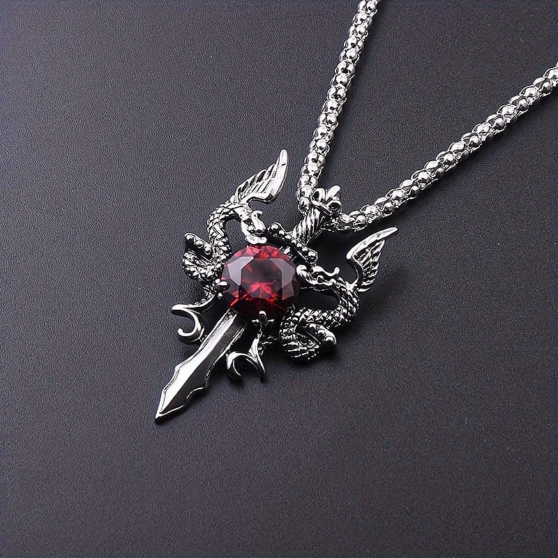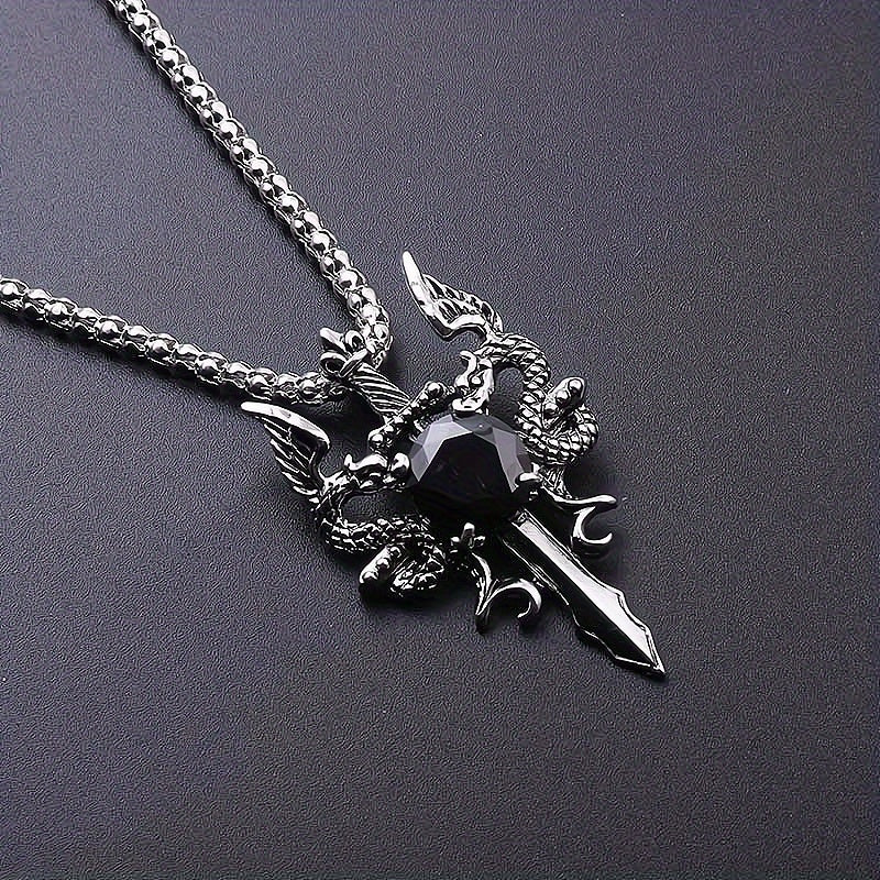 Vintage style necklace featuring a knight, dragon, and cross sword design. Perfect for couples with a retro vibe.