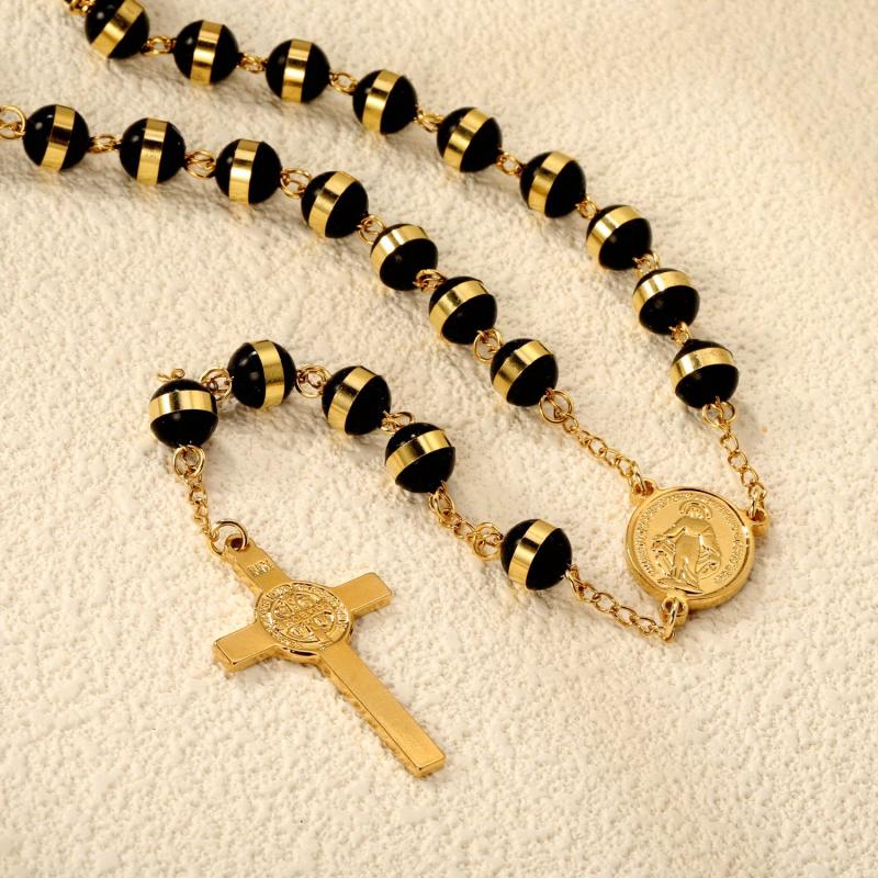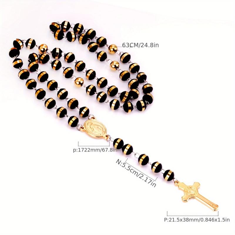 Stylish 18K Plated Stainless Steel Cross Pendant Necklace with beaded chain. Durable and trendy accessory for men and women of all ages.