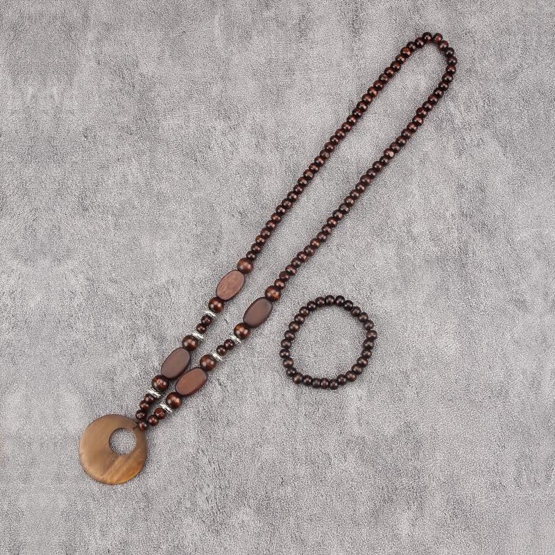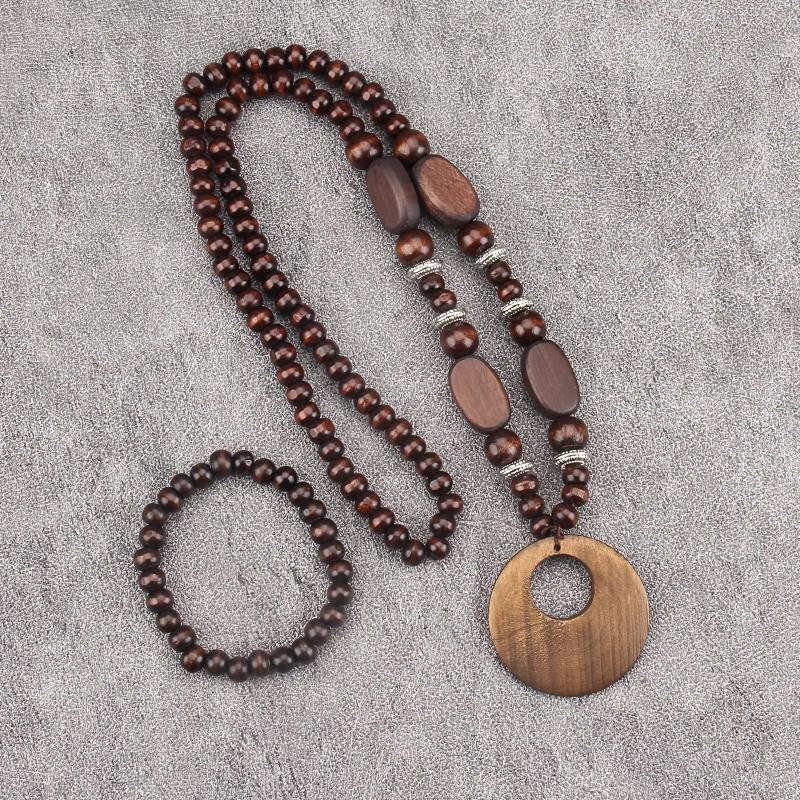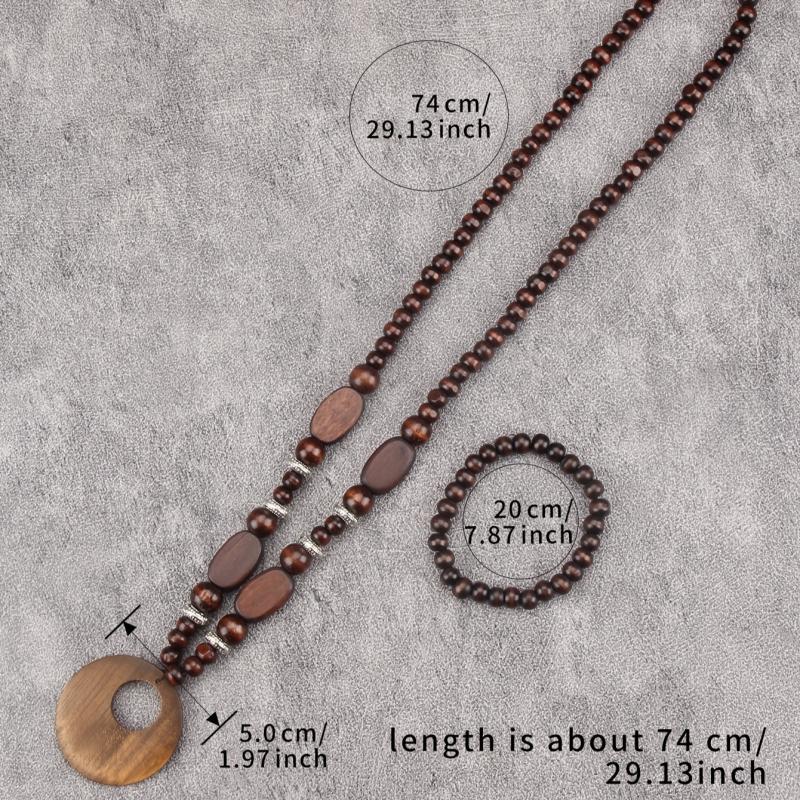 Embrace a vintage look with this versatile pendant necklace featuring a unique retro ethnic style design. The wooden bead accessory adds a touch of natural charm. Suitable for both men and women.