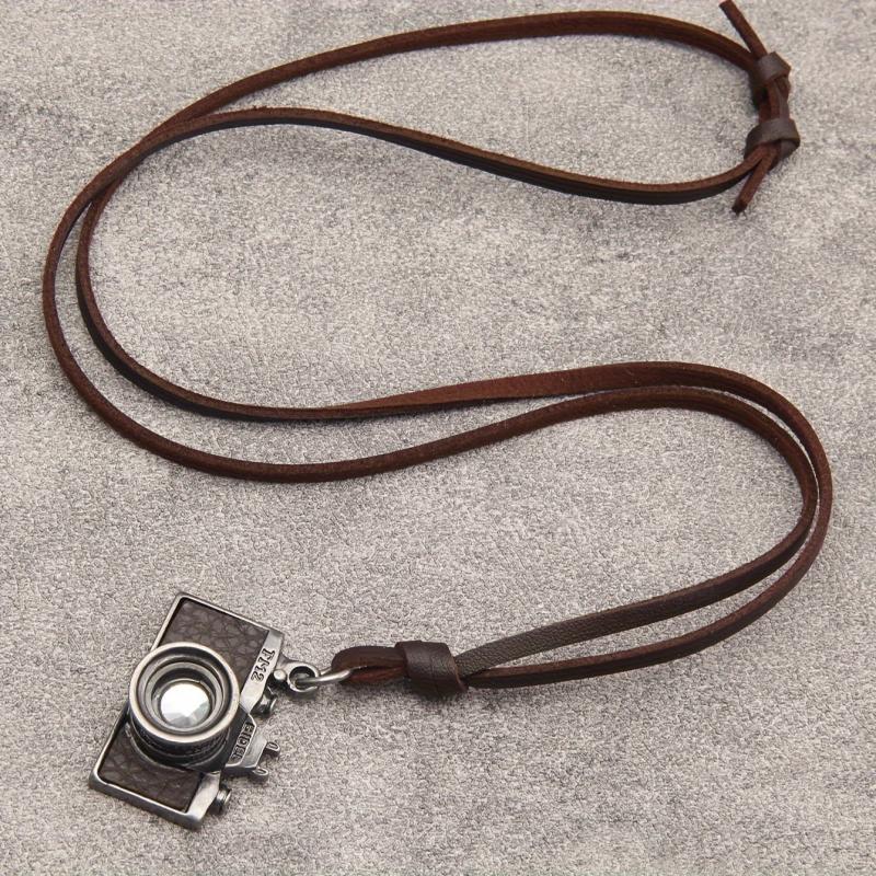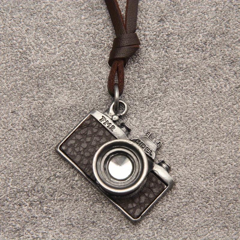 Add a vintage touch to your outfit with this faux leather camera pendant necklace. Perfect for daily wear, dating, hip hop style, stage performances, and shooting costumes.