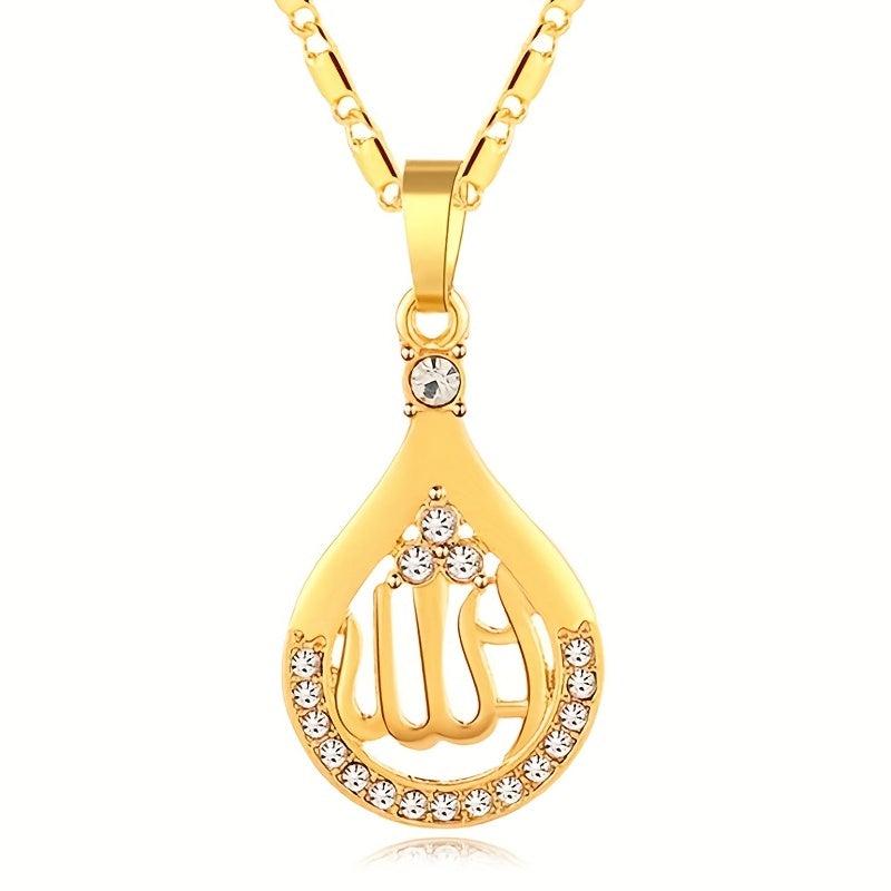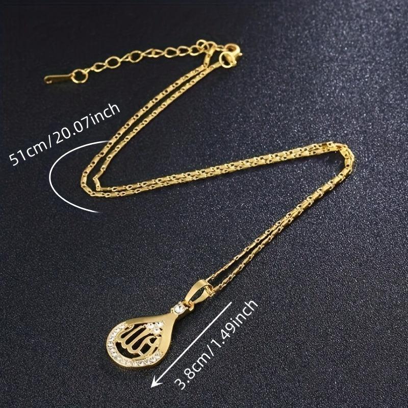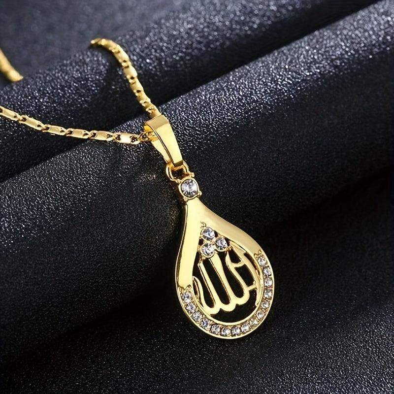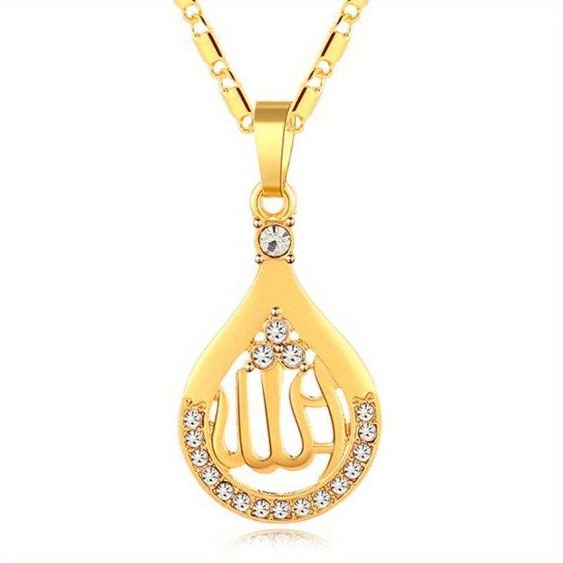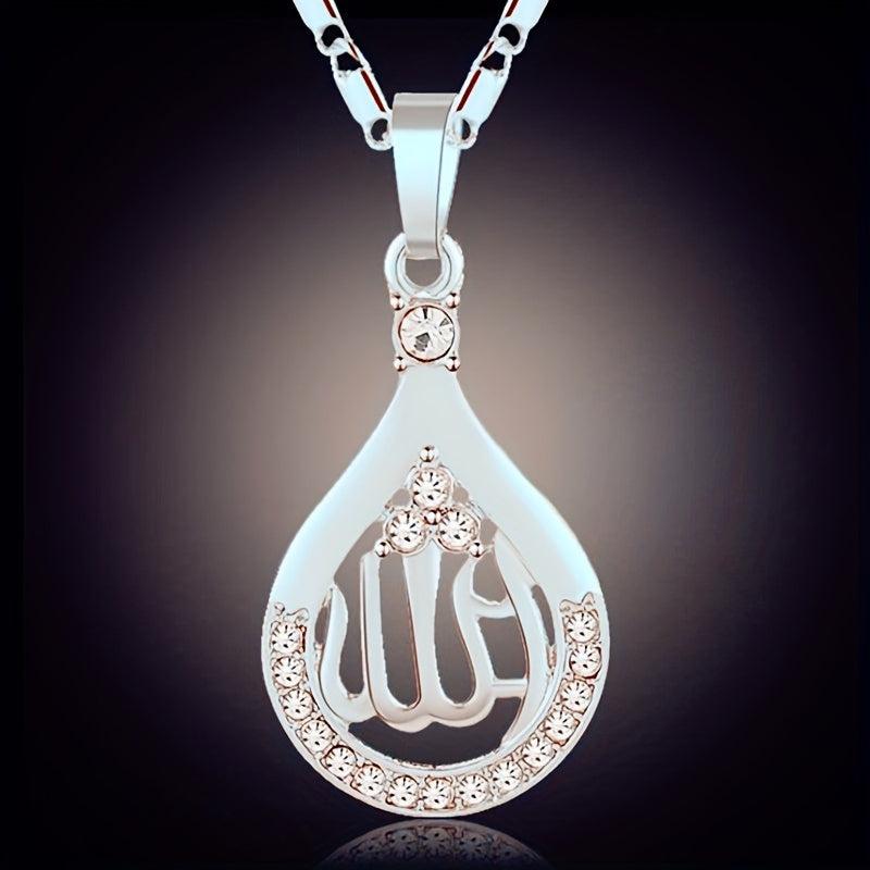 This pendant necklace features a retro punk design with religious motifs including Allah and Quran. It serves as an Islamic amulet accessory suitable for both men and women, making it a thoughtful gift option.