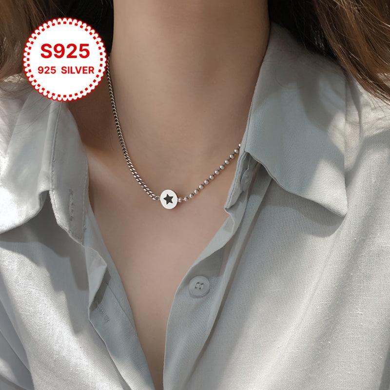 Elegant retro style necklace featuring a round five-pointed star pendant. Perfect for women with allergies. Great for daily wear or special occasions. Makes a lovely Valentine's or Mother's Day gift.