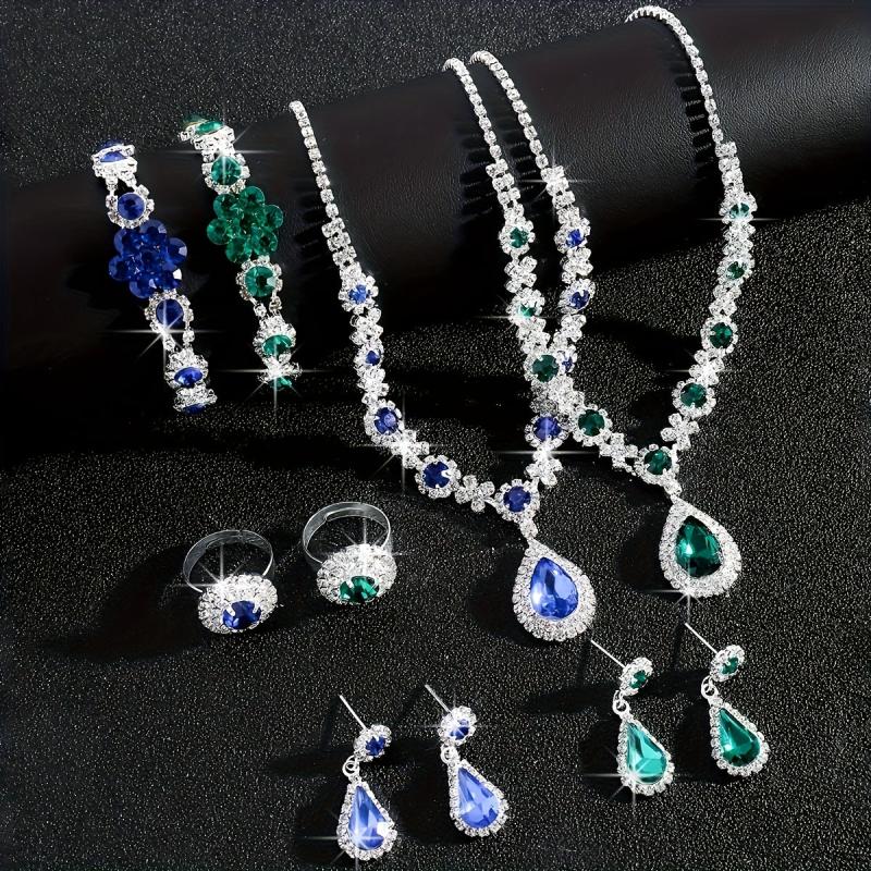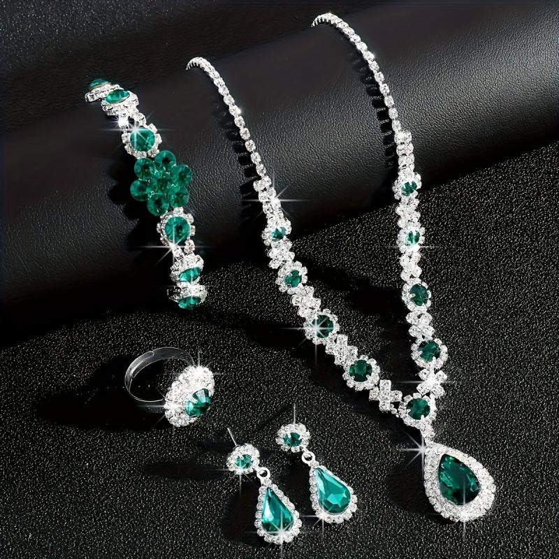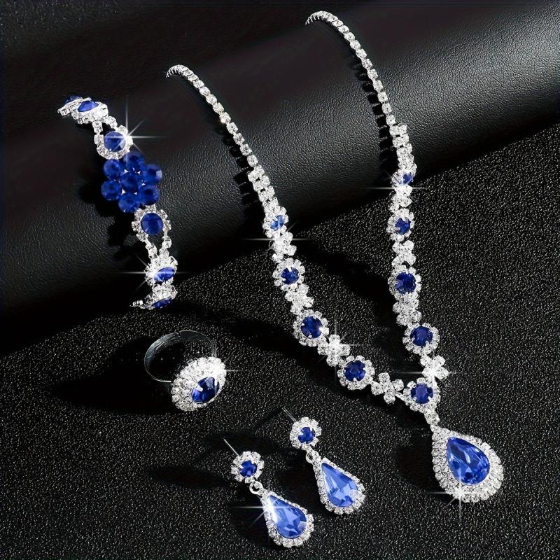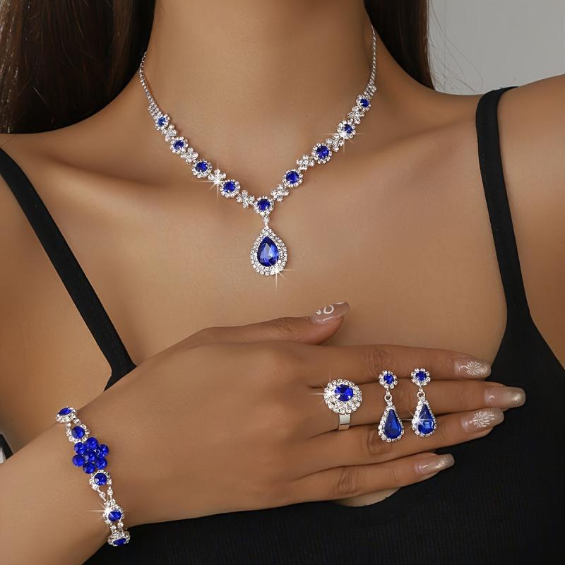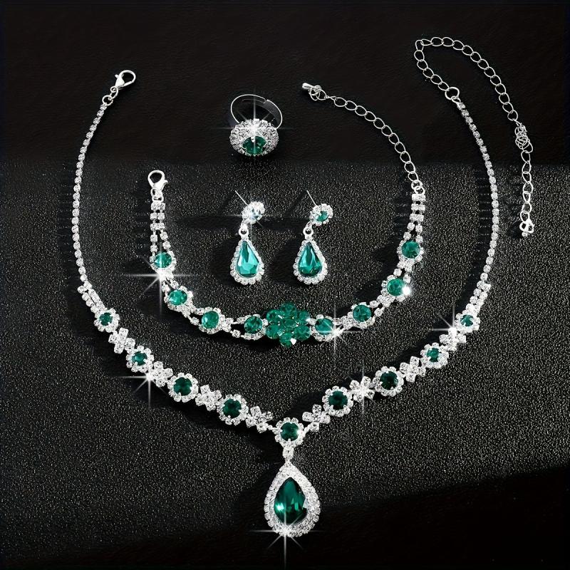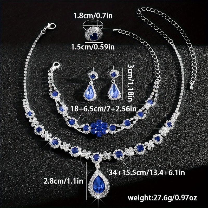 Complete your formal look with this stunning 4-piece set that includes a necklace, bracelet, earrings, and ring. Featuring a delicate flower drop design and rhinestone embellishments, this set is perfect for weddings, photography, and other special occasions.