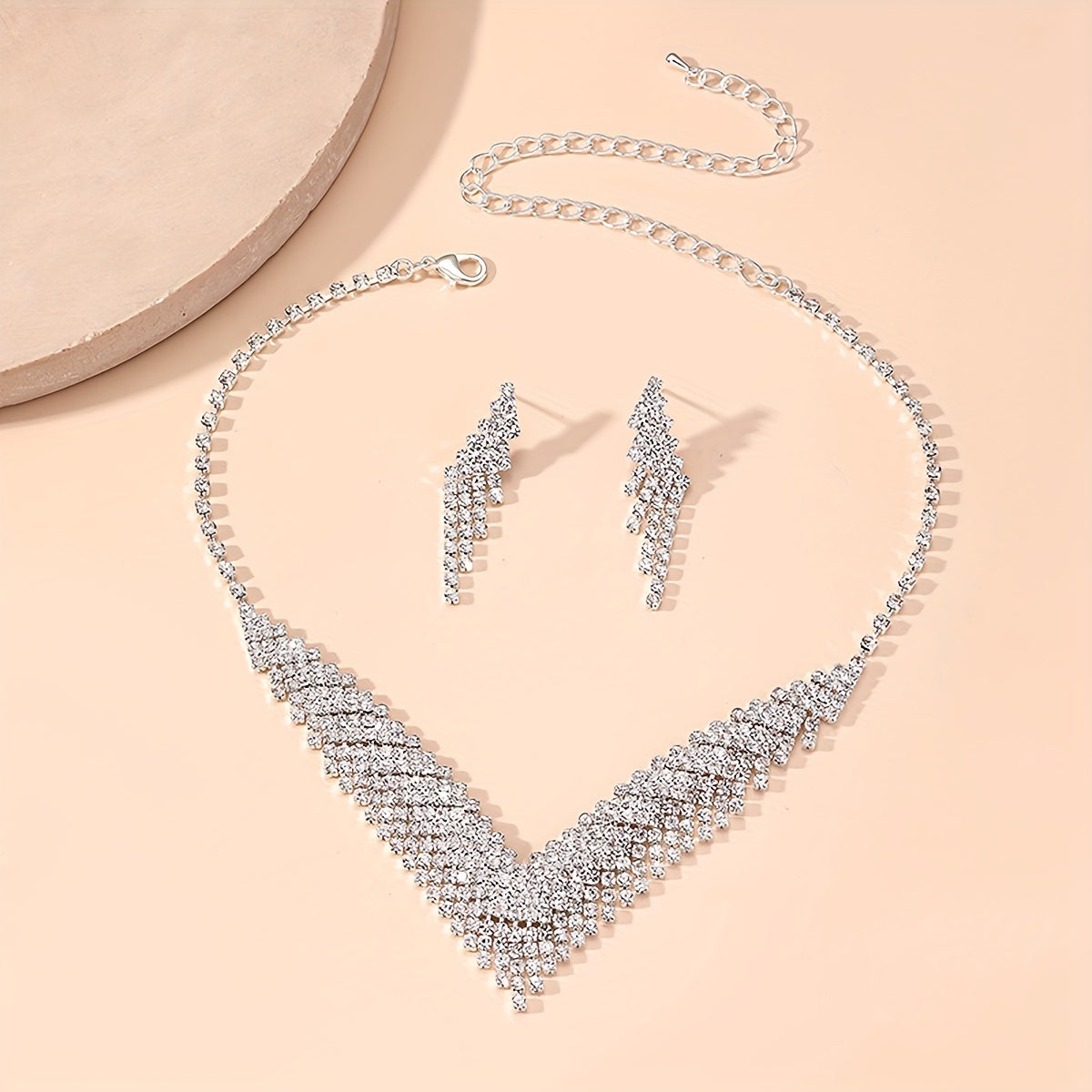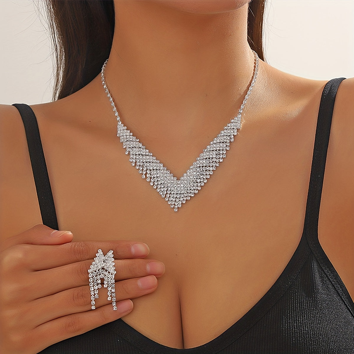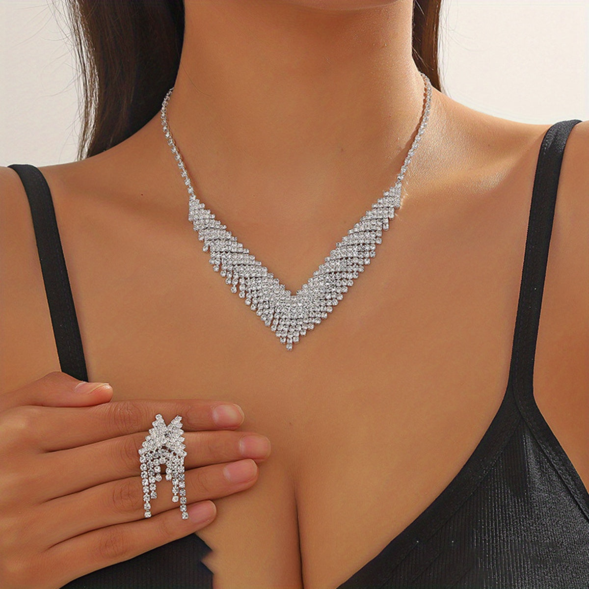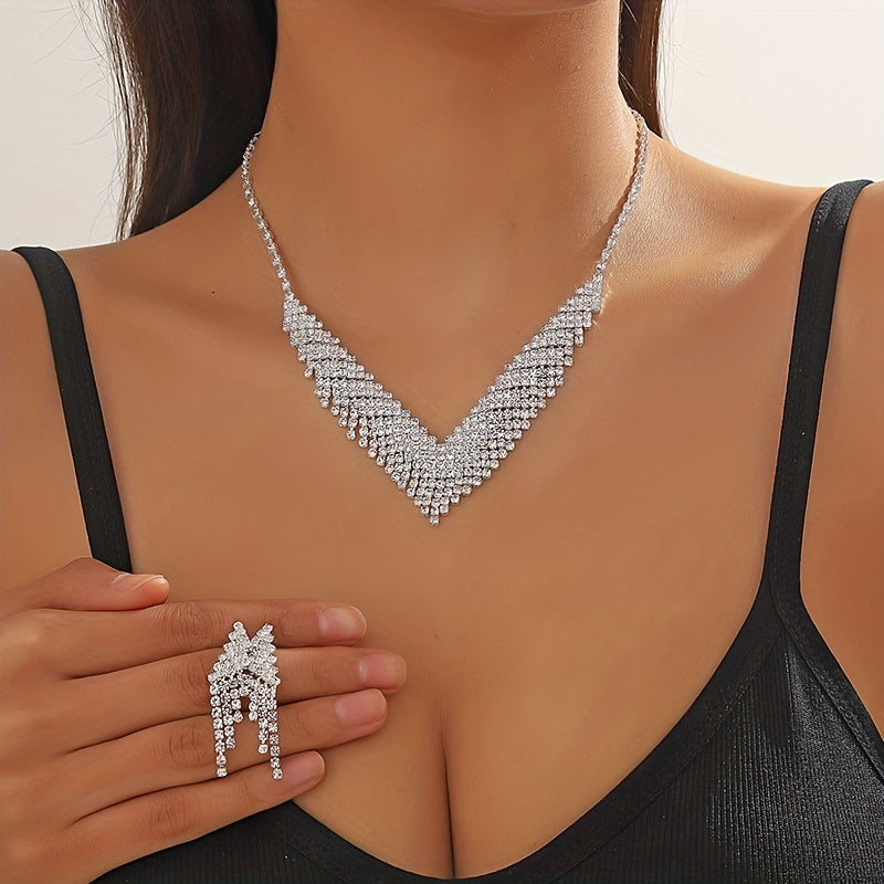 Get ready to dazzle with this stunning 3pcs jewelry set featuring rhinestone inlays. Perfect for evening parties, cocktail parties, and special occasions. An elegant gift for her.