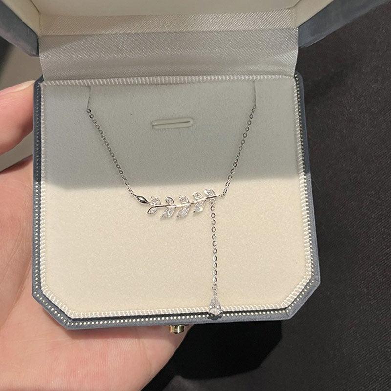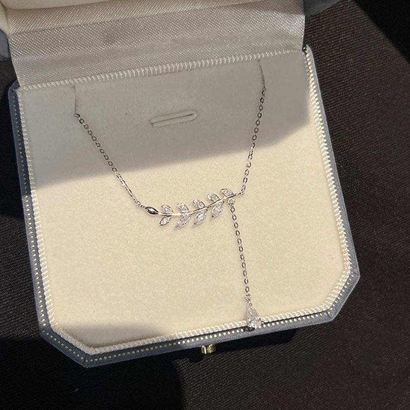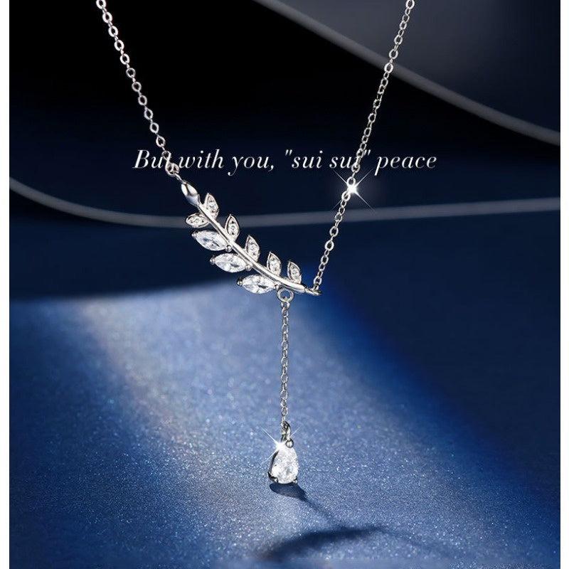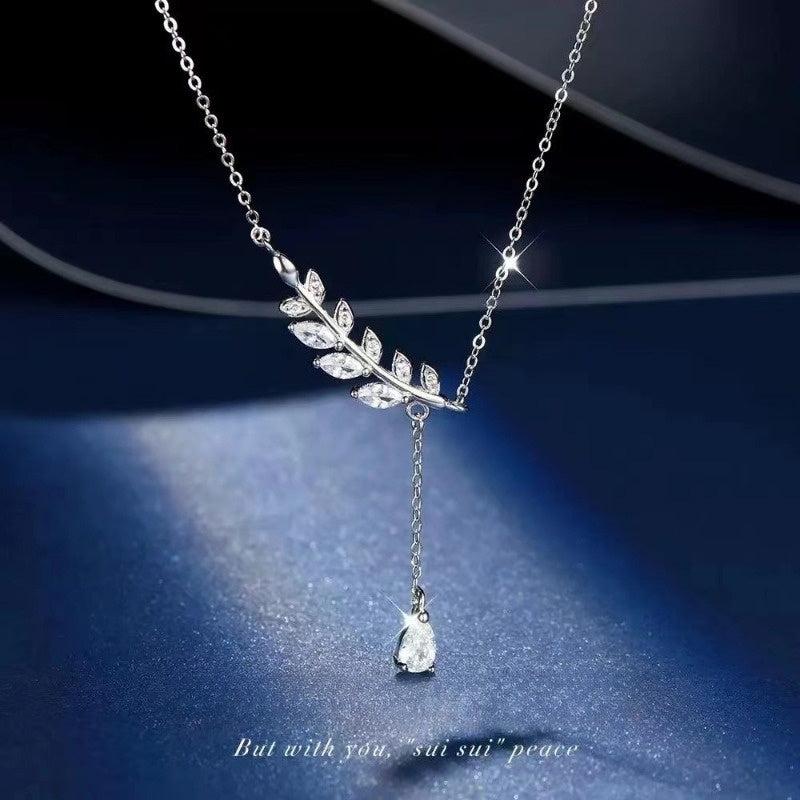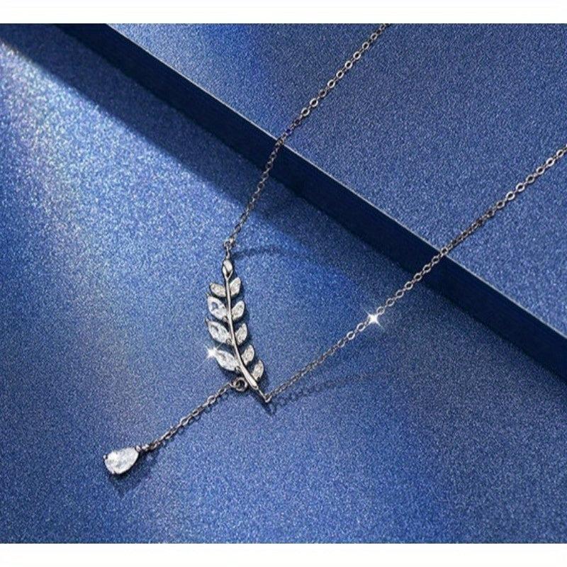 Elegant and eye-catching necklace featuring a rhinestone embellished leaf pendant with tassel detail. Perfect accessory for parties and vacations. Ideal gift for her.