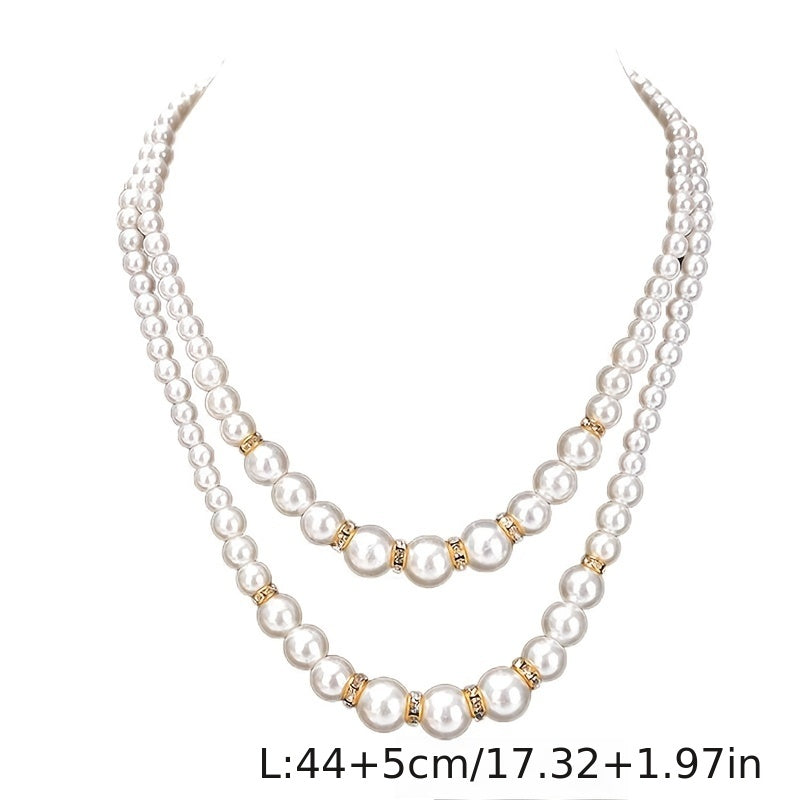 Upgrade your style with this sweet and elegant double layer necklace featuring a mix of rhinestones and pearls. Add a touch of sophistication to any outfit.