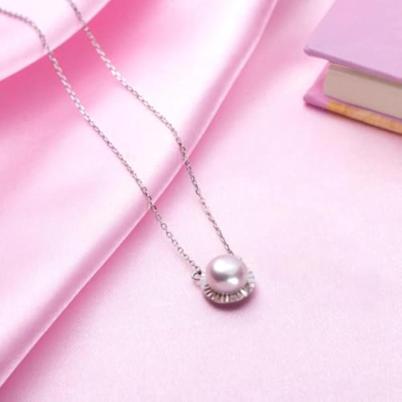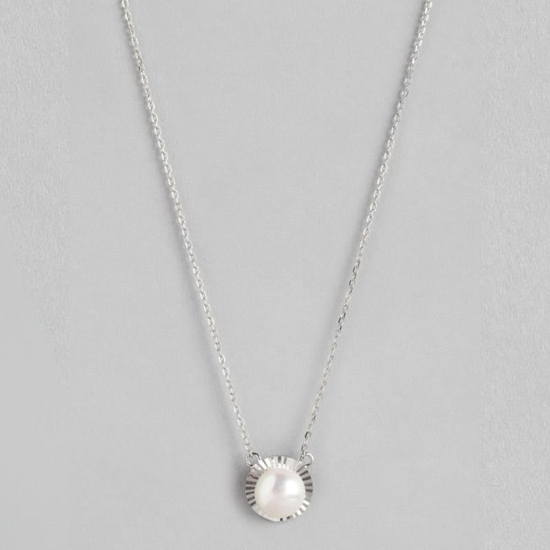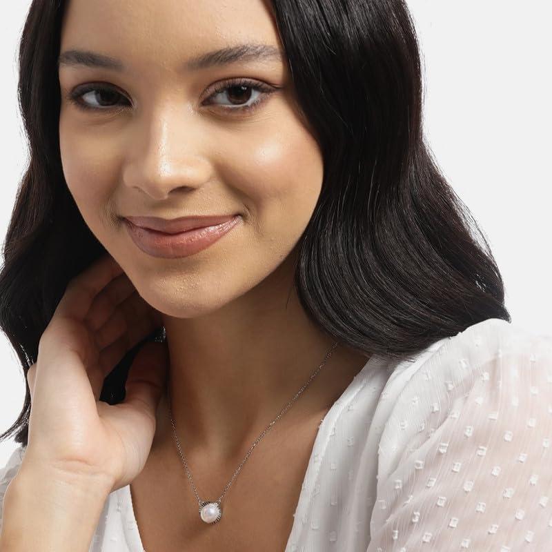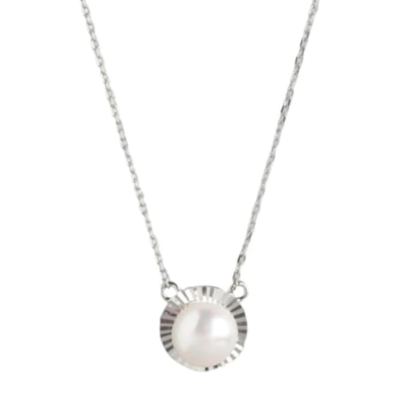 This beautiful pearl necklace is a perfect gift for girls and mothers. Made of 925 sterling silver with a rhodium plating, it is a special piece to cherish.