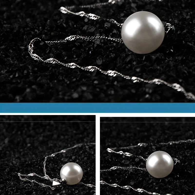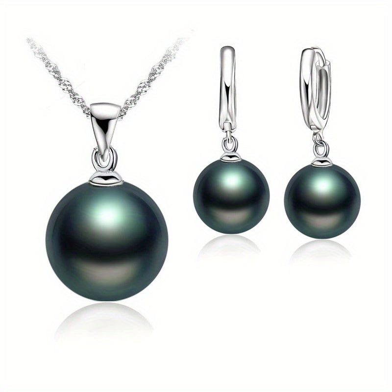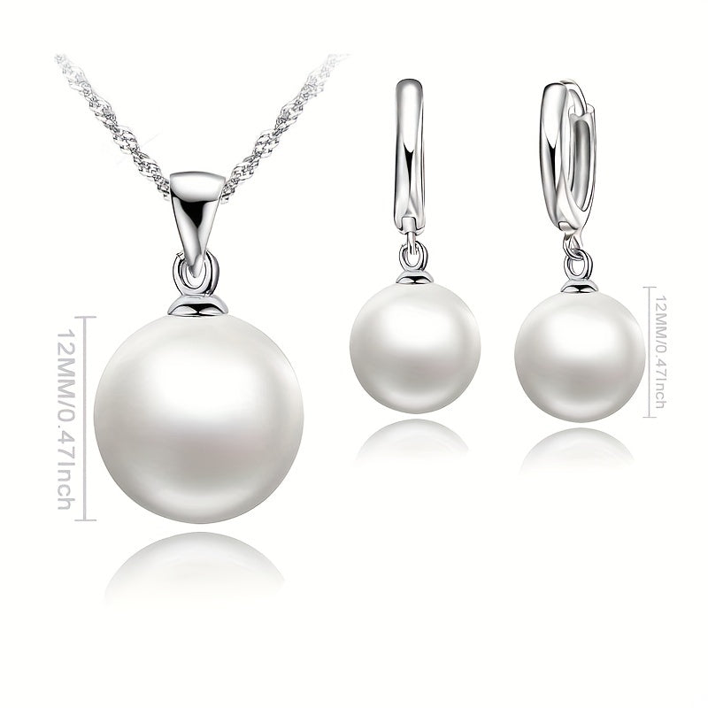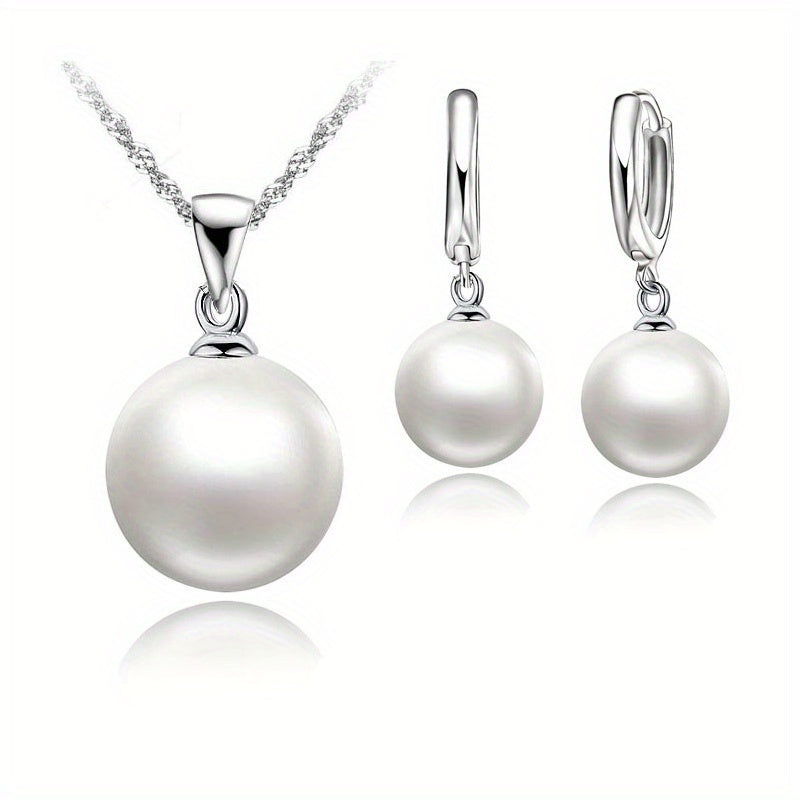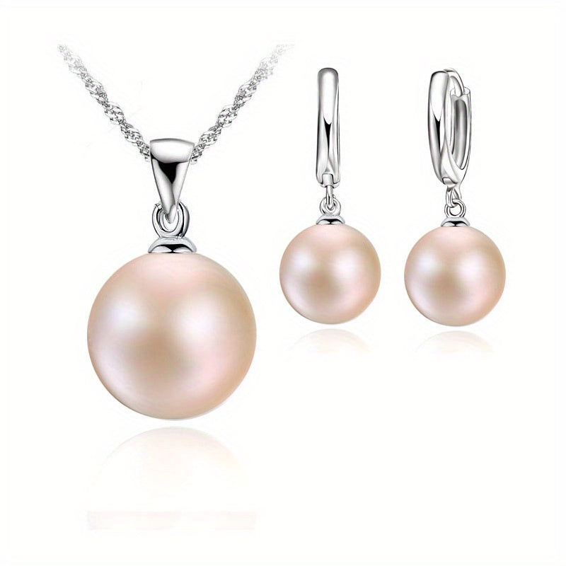 Complete your elegant look with this classic jewelry set featuring round pearl pendant necklace and matching earrings. Perfect for prom, dinner, or holiday festivities.