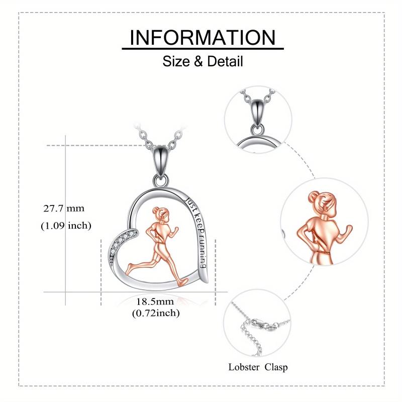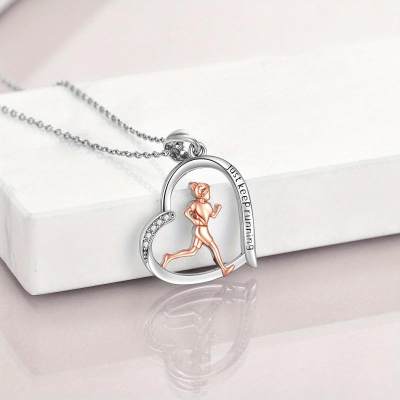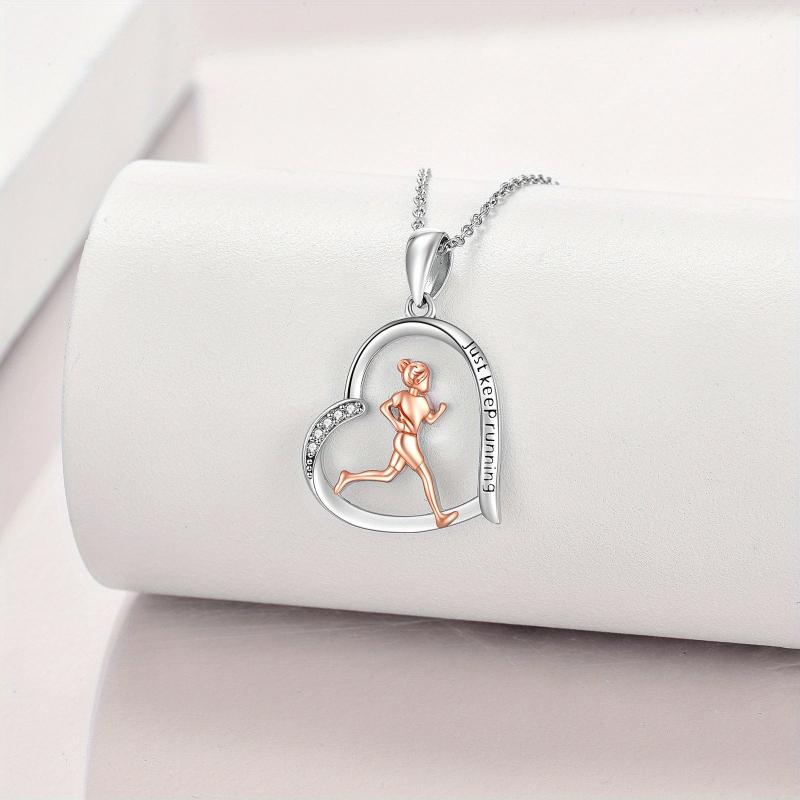 Elegant 925 sterling silver necklace featuring a running pendant, perfect gift for female runners and sports enthusiasts. Show your love for running with this inspirational jewelry piece.