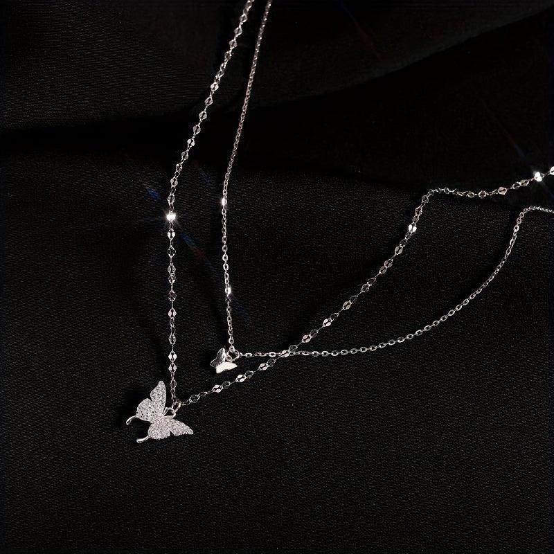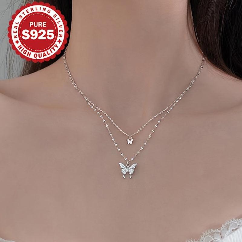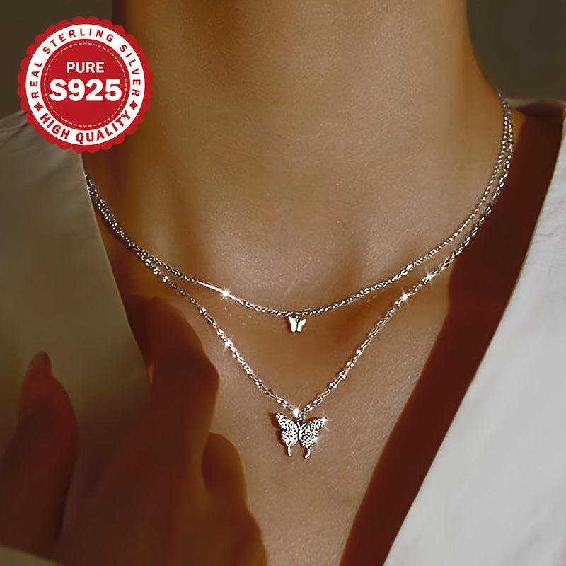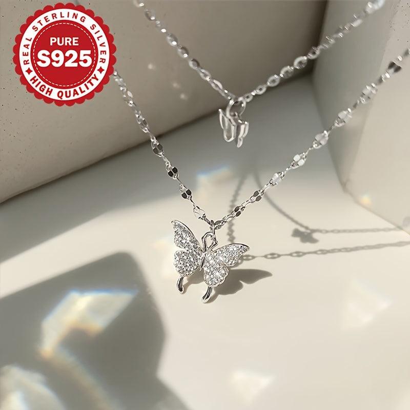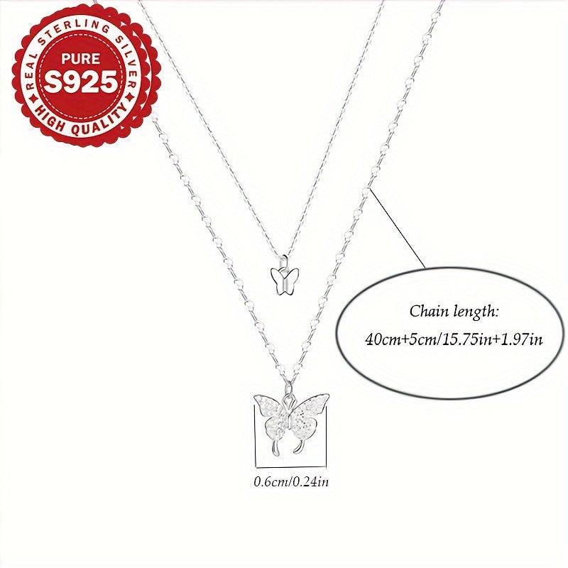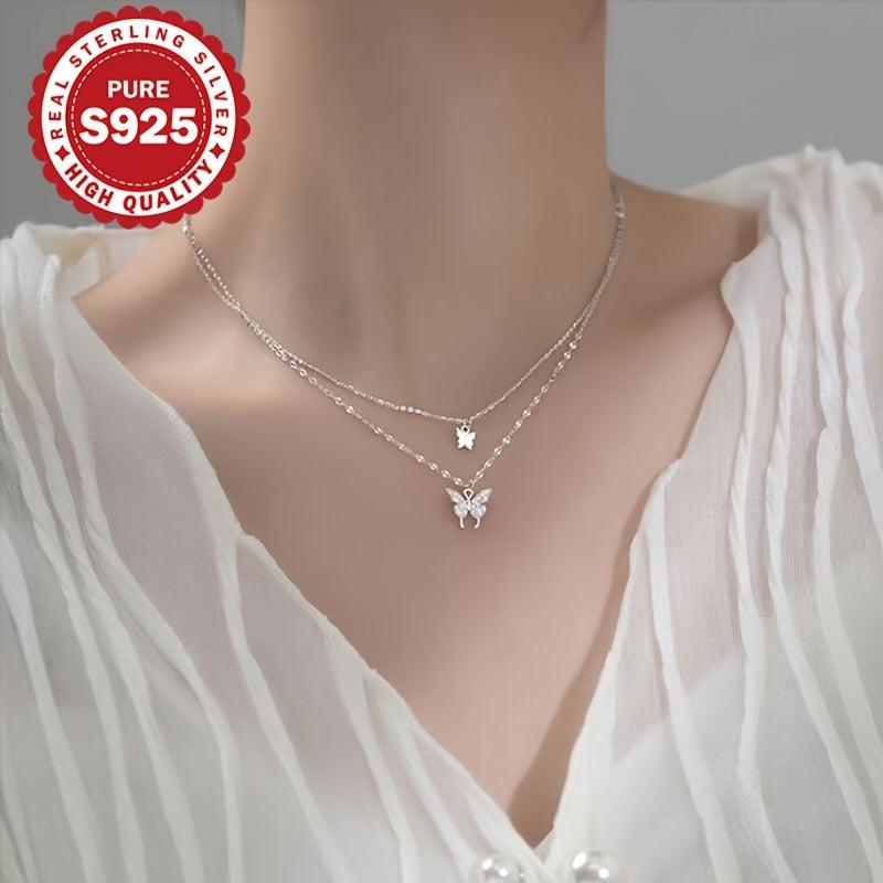 This beautiful necklace features a double layer butterfly design with a sparkling zirconia insect pendant. Made of pure silver, it is a perfect birthday gift for women, weighing 2.6g.