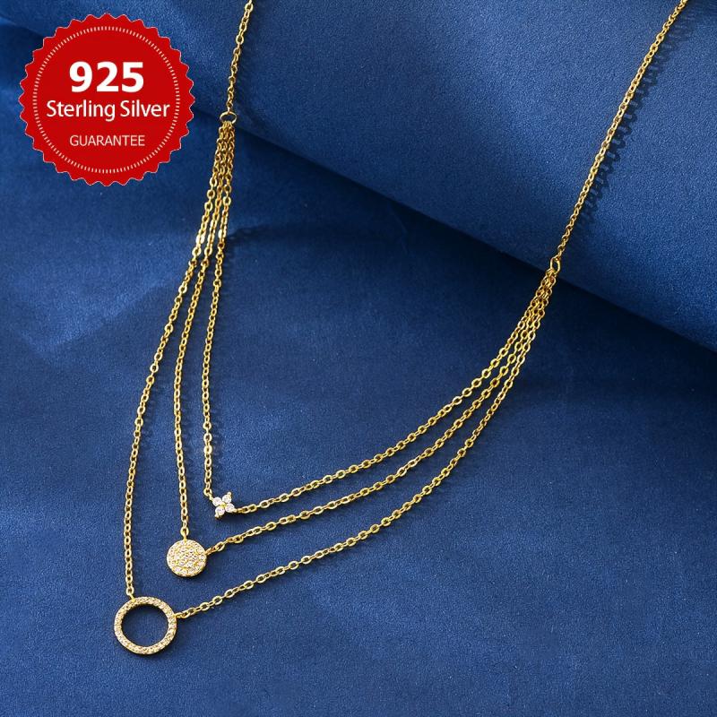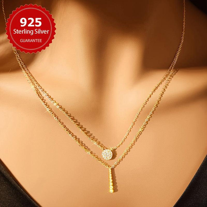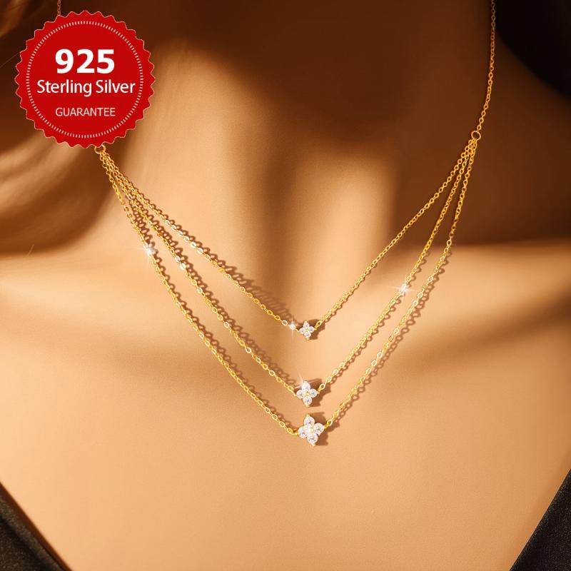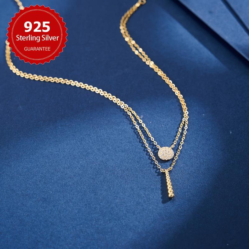 This stylish S925 pure silvery double layer necklace is perfect for daily wear all year round. It adds a touch of elegance to any outfit.