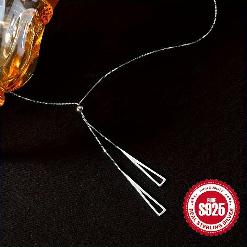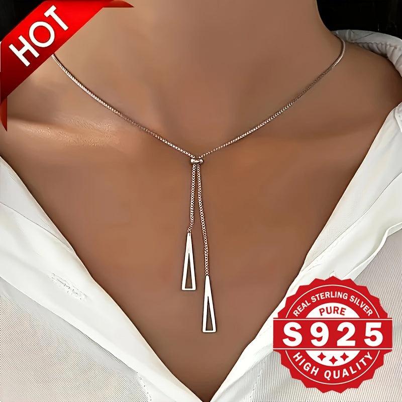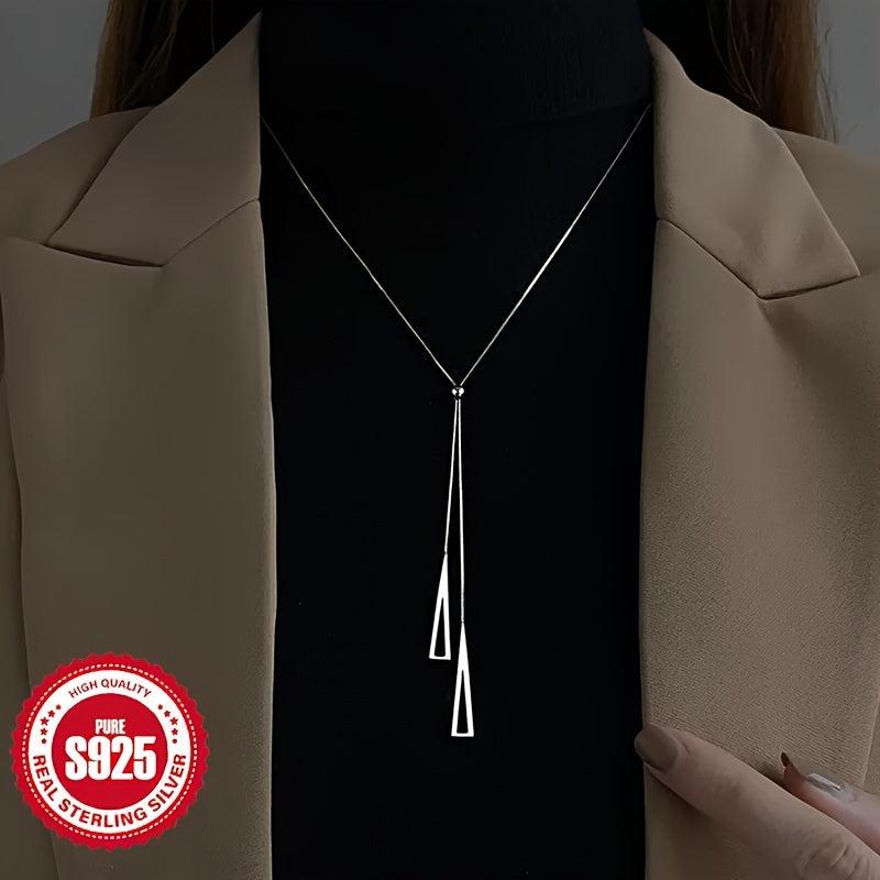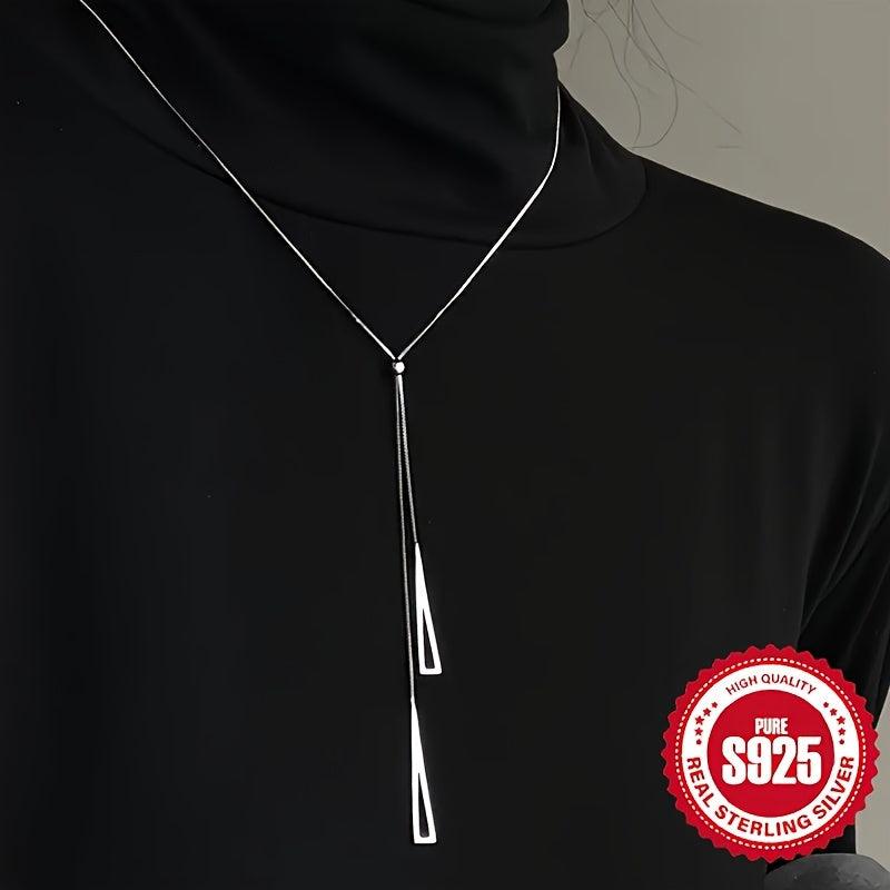 Elevate your style with this S925 sweater chain featuring a unique lightweight geometric necklace. Hypoallergenic design for comfort. Weighs 2.51G.