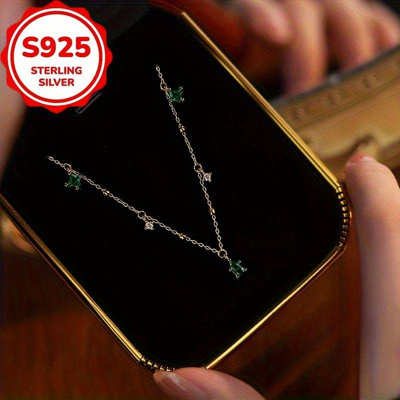 s925 Green Water Droplet Geometric Necklace, Exclusive & Sexy Gift for Women