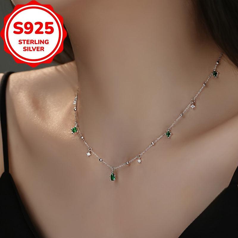 Elevate your look with this unique s925 necklace featuring a green water droplet design. Perfect for daily wear or as a special gift.