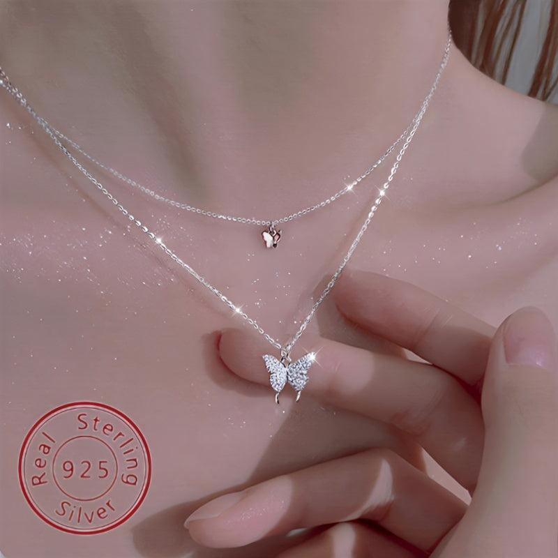 Elevate your style with this high-end small and unique pendant necklace featuring synthetic zirconia. The double-layer stacked design adds a touch of elegance.