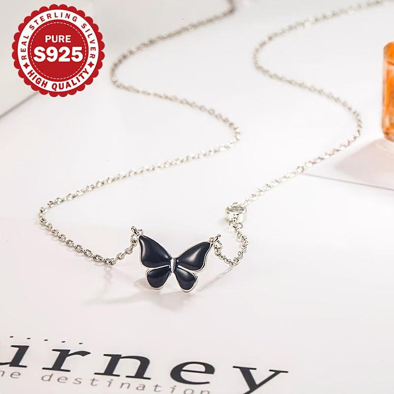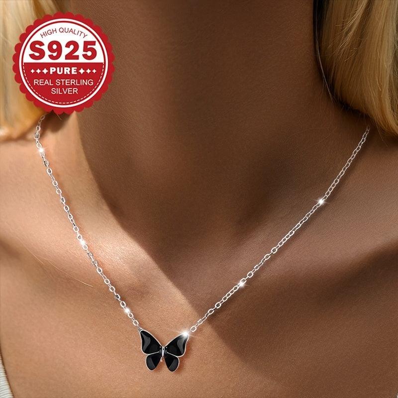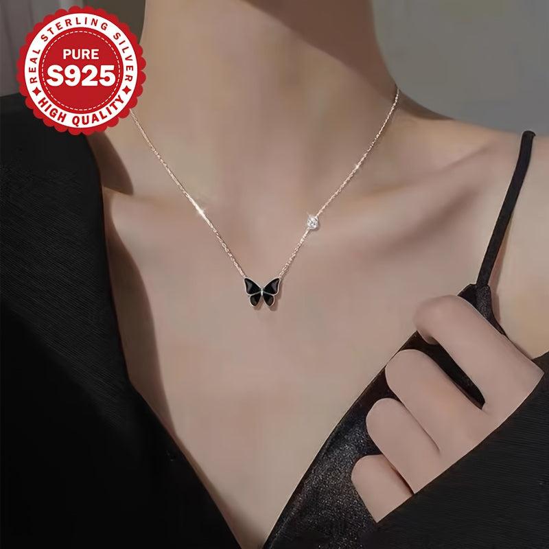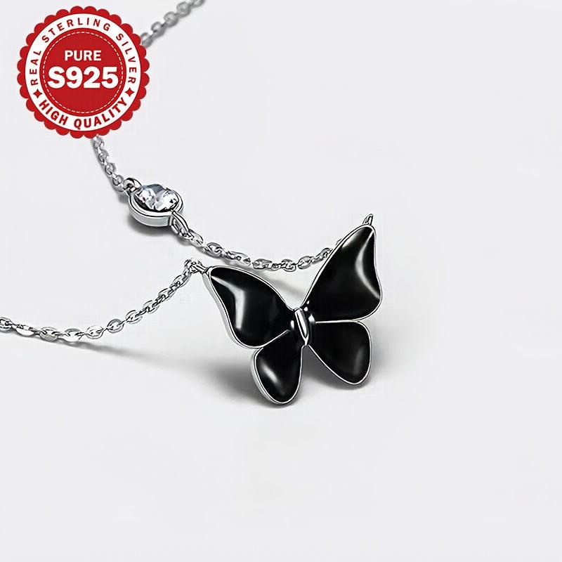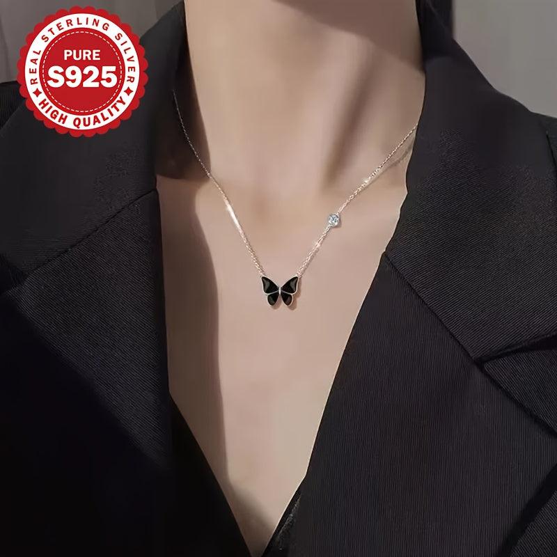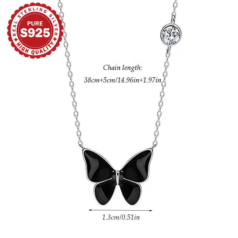 This S925 sterling silver necklace features a butterfly design with round zirconia stones, perfect for any occasion. Its gothic style adds a touch of edge to your look while still being sweet and elegant. Ideal for gifting to a loved one.