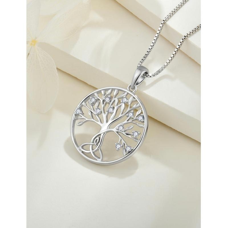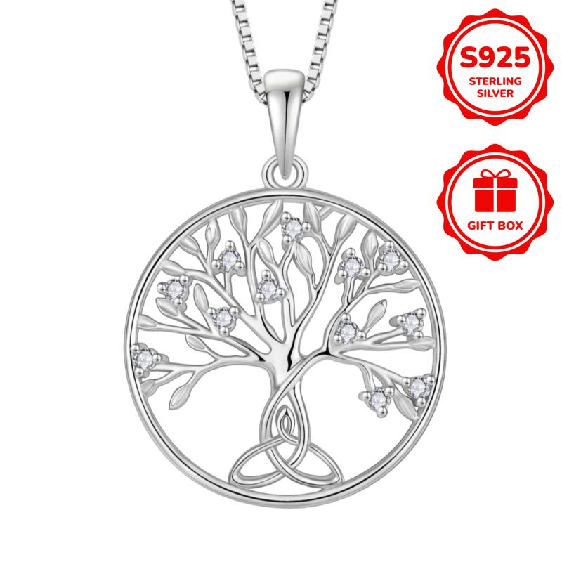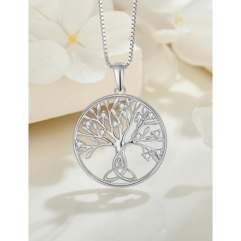 This pendant necklace features a Celtic knot tree of life design, making it a meaningful and stylish gift for friends. Crafted from hypoallergenic S925 silver, it is lightweight at 4g and comes with a delicate chain.