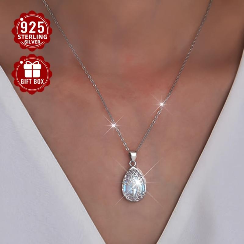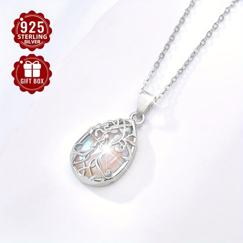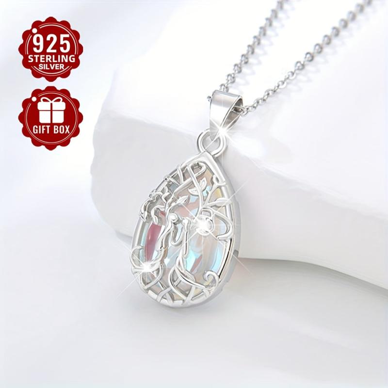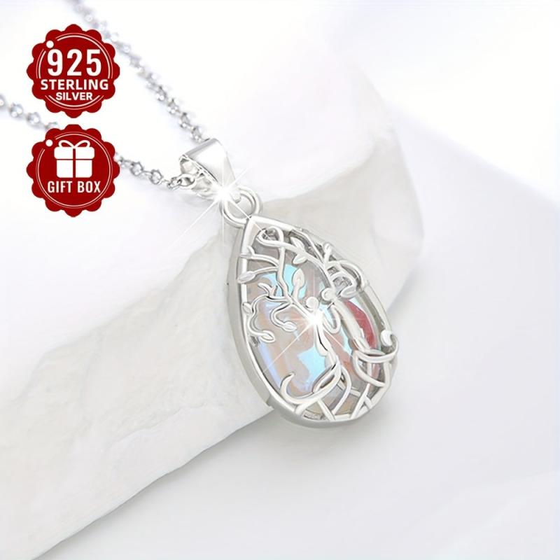 This stunning S925 sterling silver pendant necklace features a moonstone life tree design, making it an ideal gift for mother's birthdays and special occasions. It is perfect for daily wear.