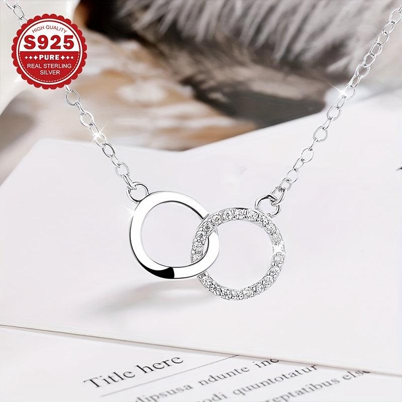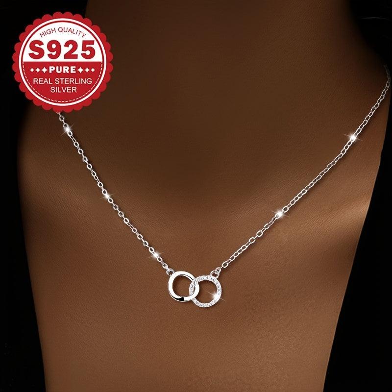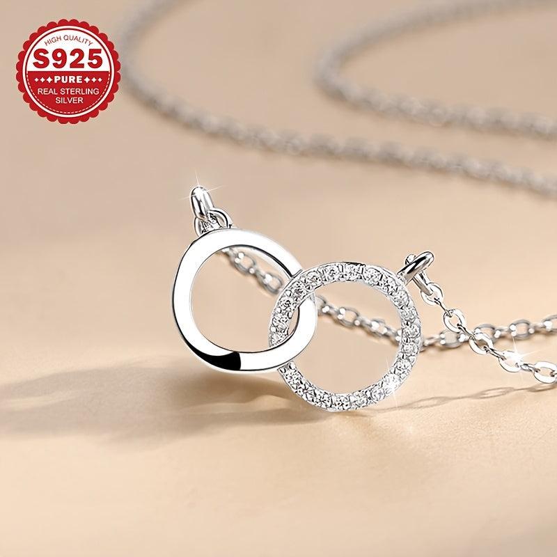 Elegant and stylish women's necklace crafted from genuine S925 sterling silver. This piece features interlocking rings for a timeless look. Makes a perfect gift for your beloved wife.