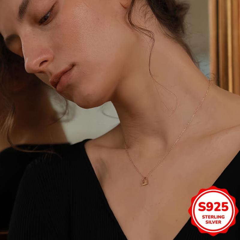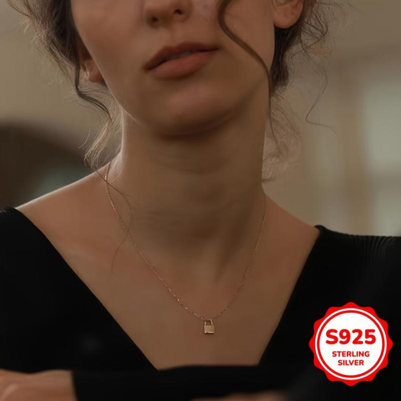 This petite lock necklace is a trendy and versatile accessory for women. Made with S925 sterling silver plated with 14k golden gloss, it adds a touch of elegance to any outfit.