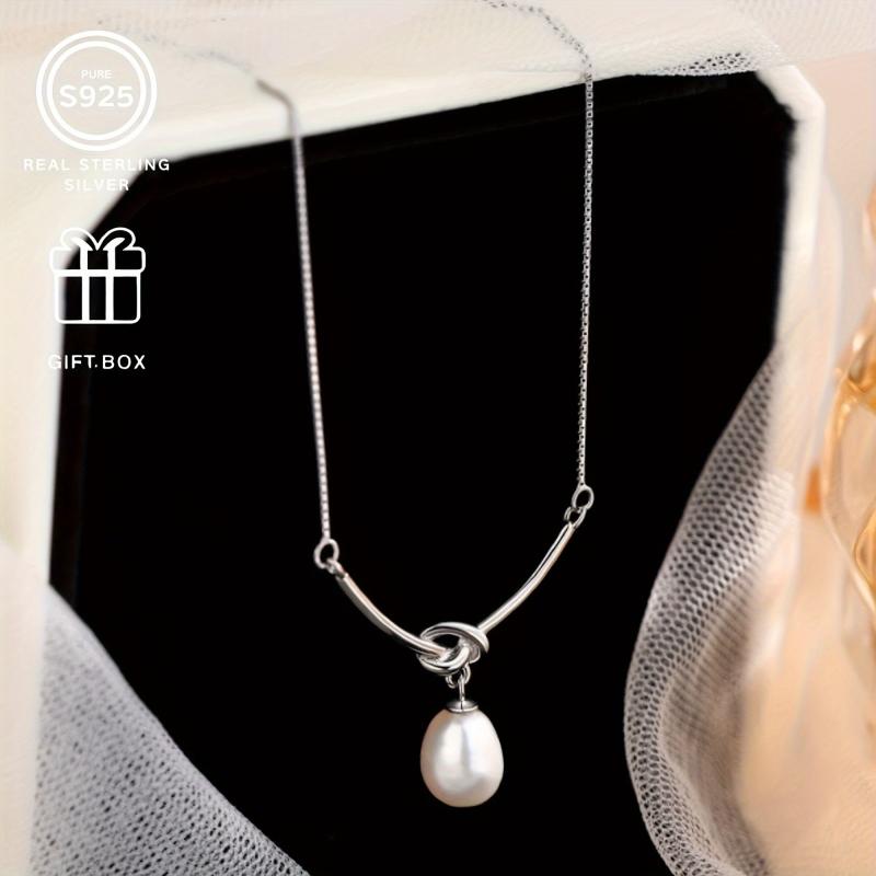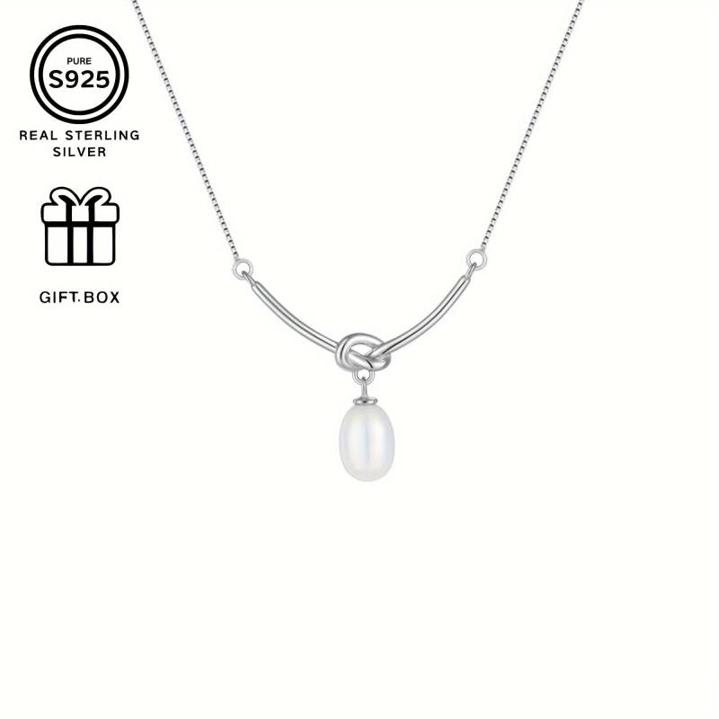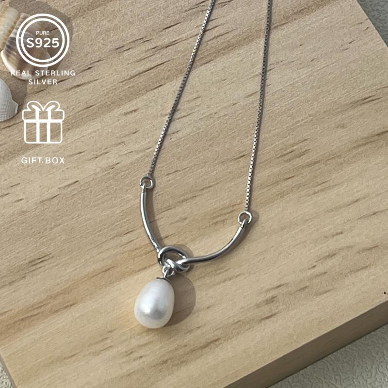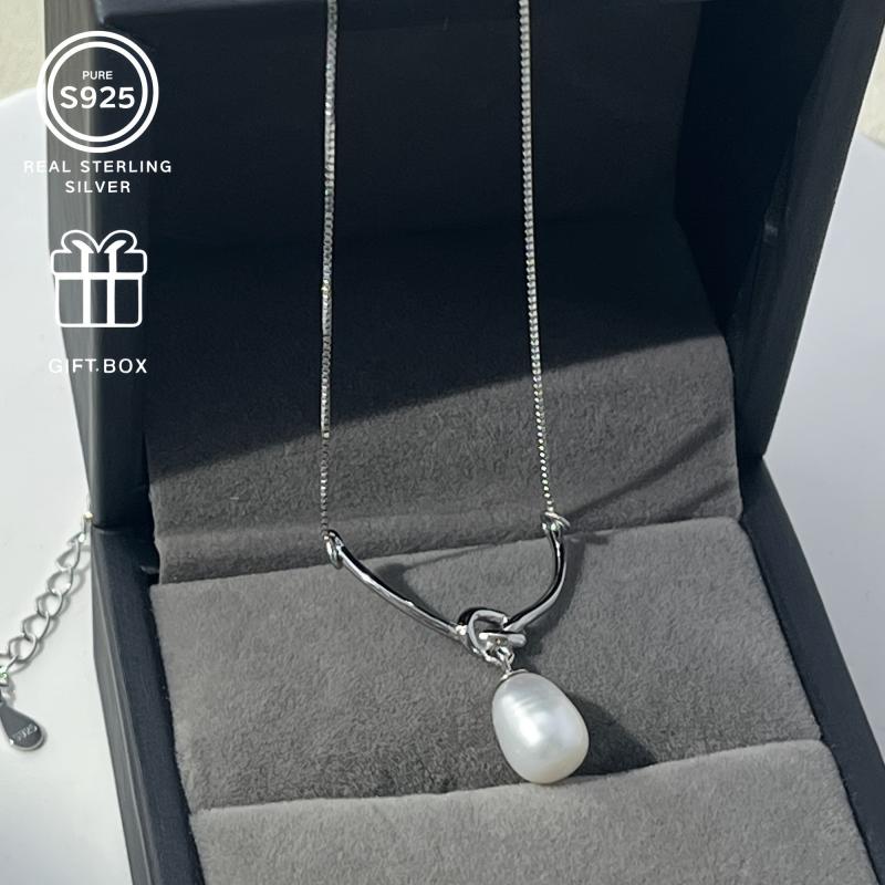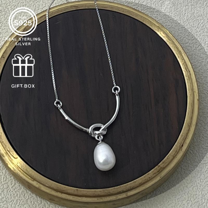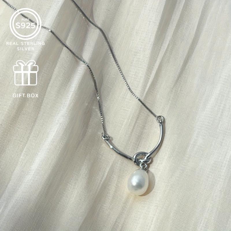 This elegant pendant necklace features a S925 sterling silver rope knot design adorned with lustrous freshwater pearls. It makes a perfect birthday gift for friends or besties and a thoughtful gift for family elders. Total weight of the necklace is 2.36g.