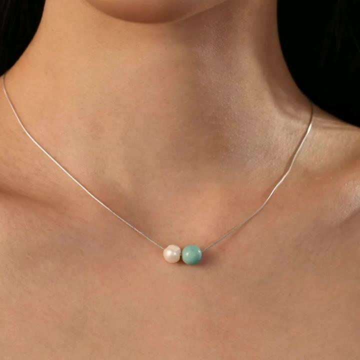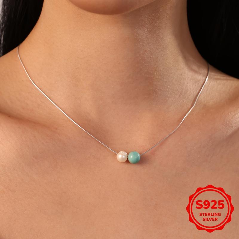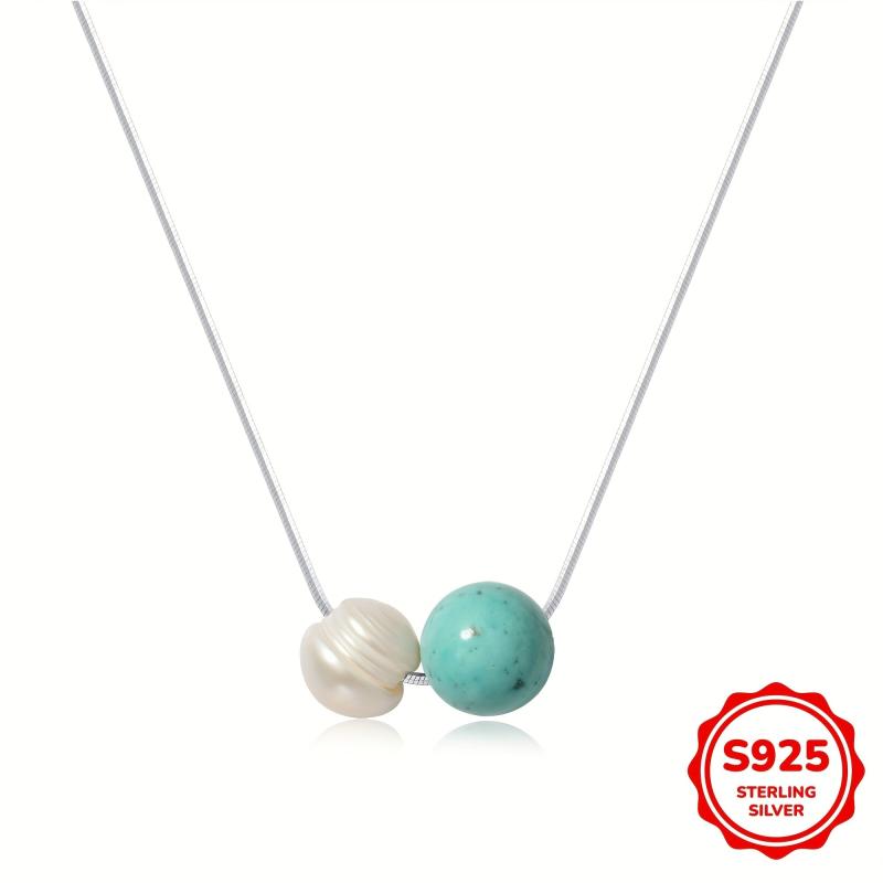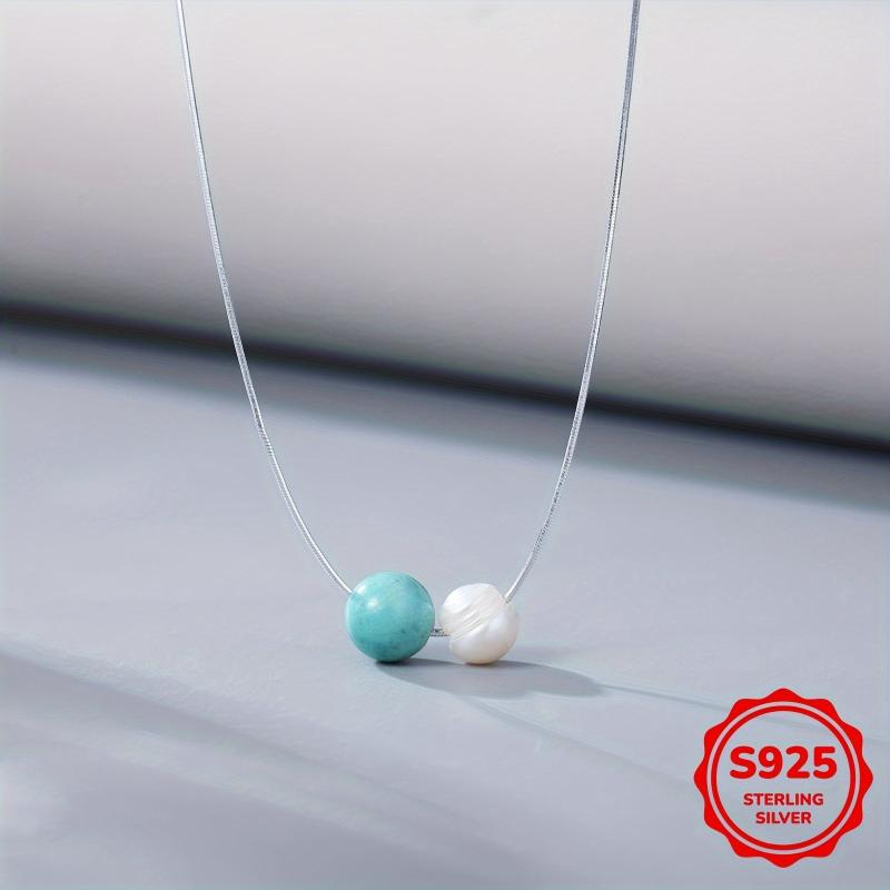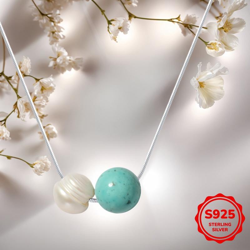 This elegant necklace features a 8mm turquoise and freshwater pearl pendant on a sterling silver chain. Perfect for daily wear or special occasions like Valentine's Day or Christmas.