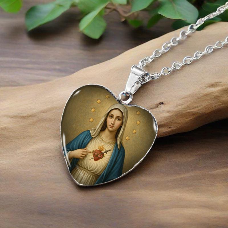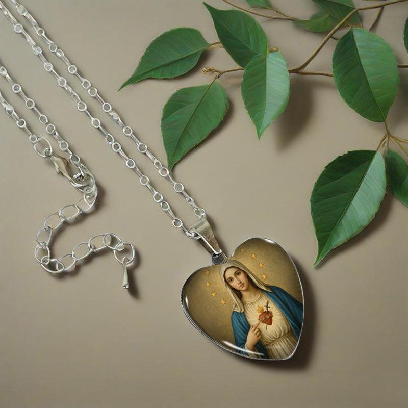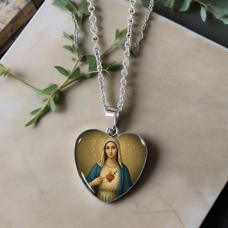 This Sacred Heart necklace features a glass pendant, making it a stylish and meaningful piece of men's jewelry.