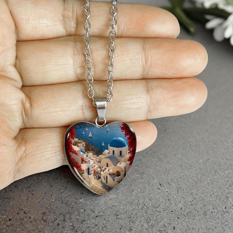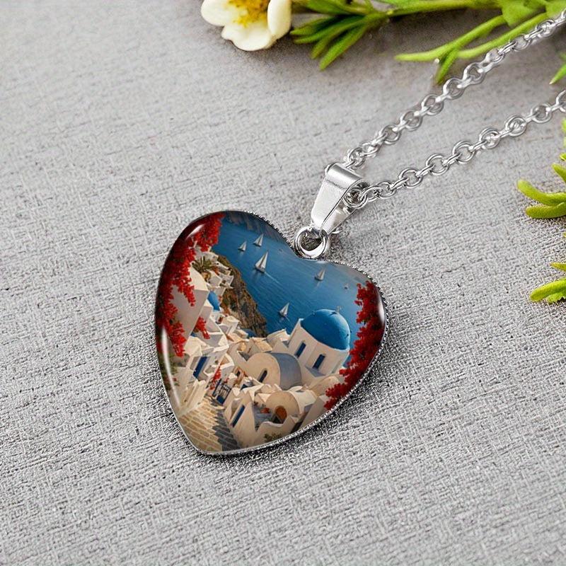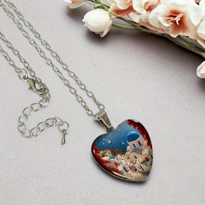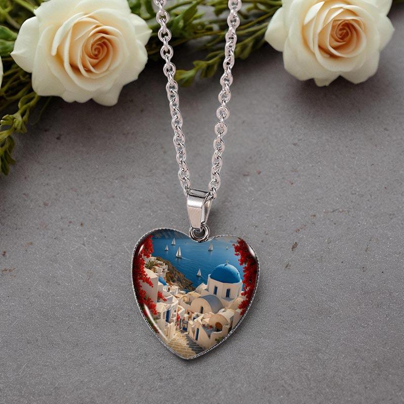 This Santorini heart pendant glass necklace is a stylish addition to men's jewelry. It features a unique design and high-quality craftsmanship.