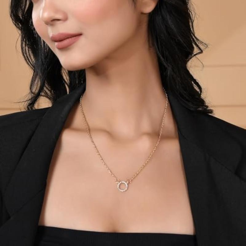 Elegant and stylish, this plated necklace features a serenity circle charm design.